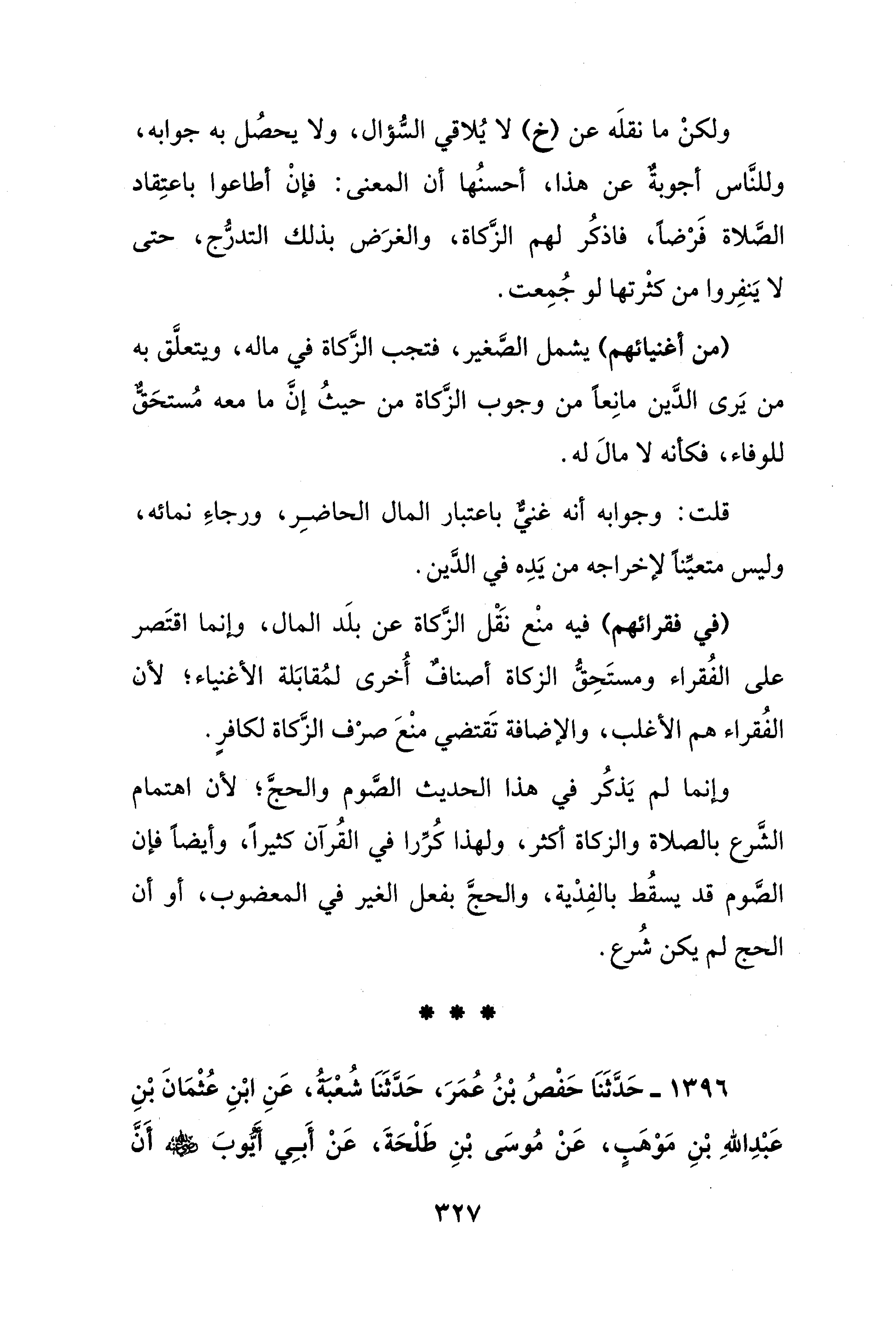 ولكنْ ما نقلَه عن (خ) لا يُلاقي السُّؤال، ولا يحصُل به جوابه، وللنَّاس أجوبةٌ عن هذا، أحسنُها أن المعنى: فإنْ أطاعوا باعتِقاد الصَّلاة فَرْضًا، فاذكُر لهم الزَّكاة، والغرَض بذلك التدرُّج، حتى لا يَنفِروا من كثْرتها لو جُمِعت.