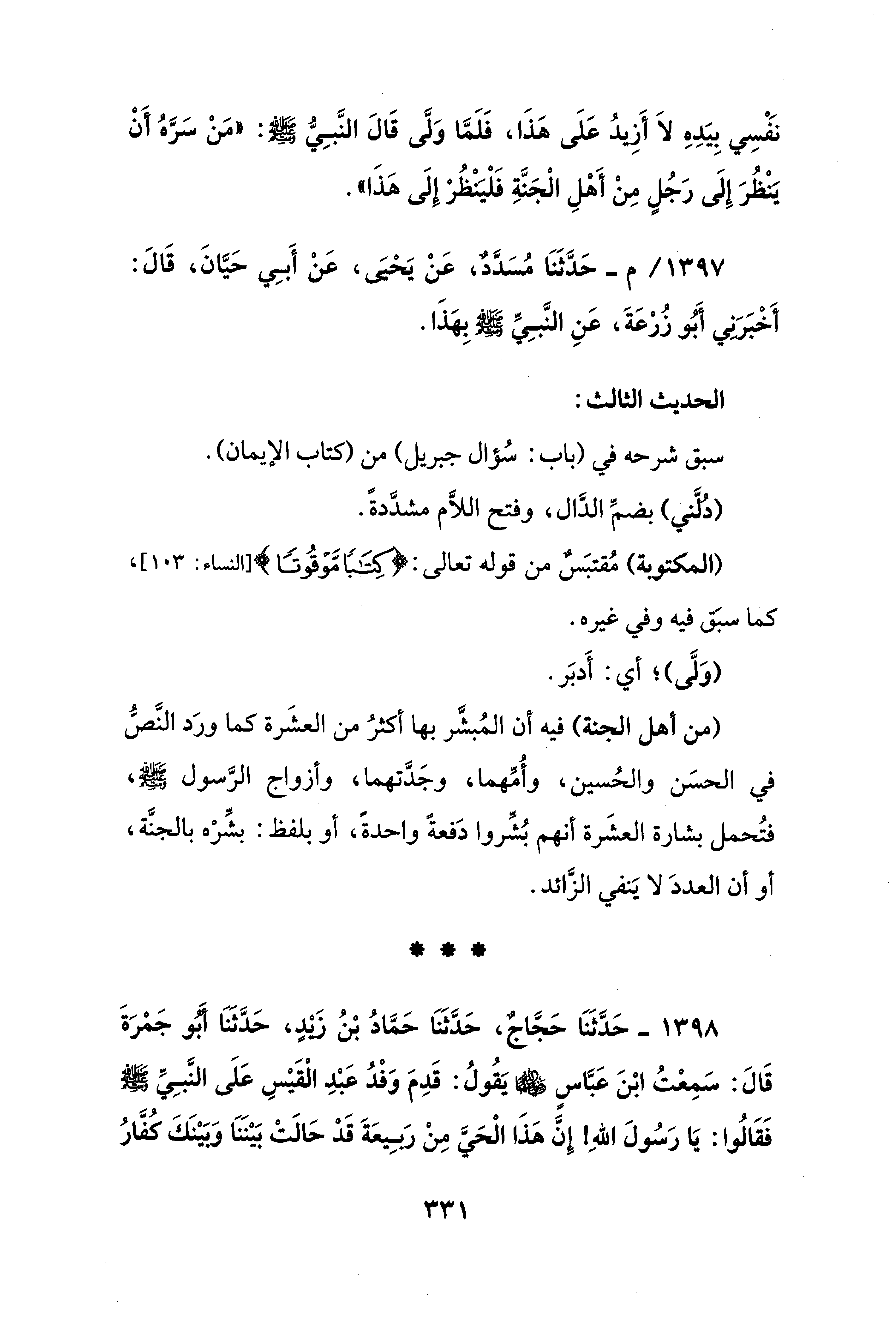 1397 / -م - حَدَّثَنَا مُسَدَّدٌ، عَنْ يَحْيَى، عَنْ أَبِي حَيَّانَ، قَالَ: أَخْبَرَنِي أَبُو زُرْعَةَ، عَنِ النَّبِيِّ - صلى الله عليه وسلم - بِهَذَا.