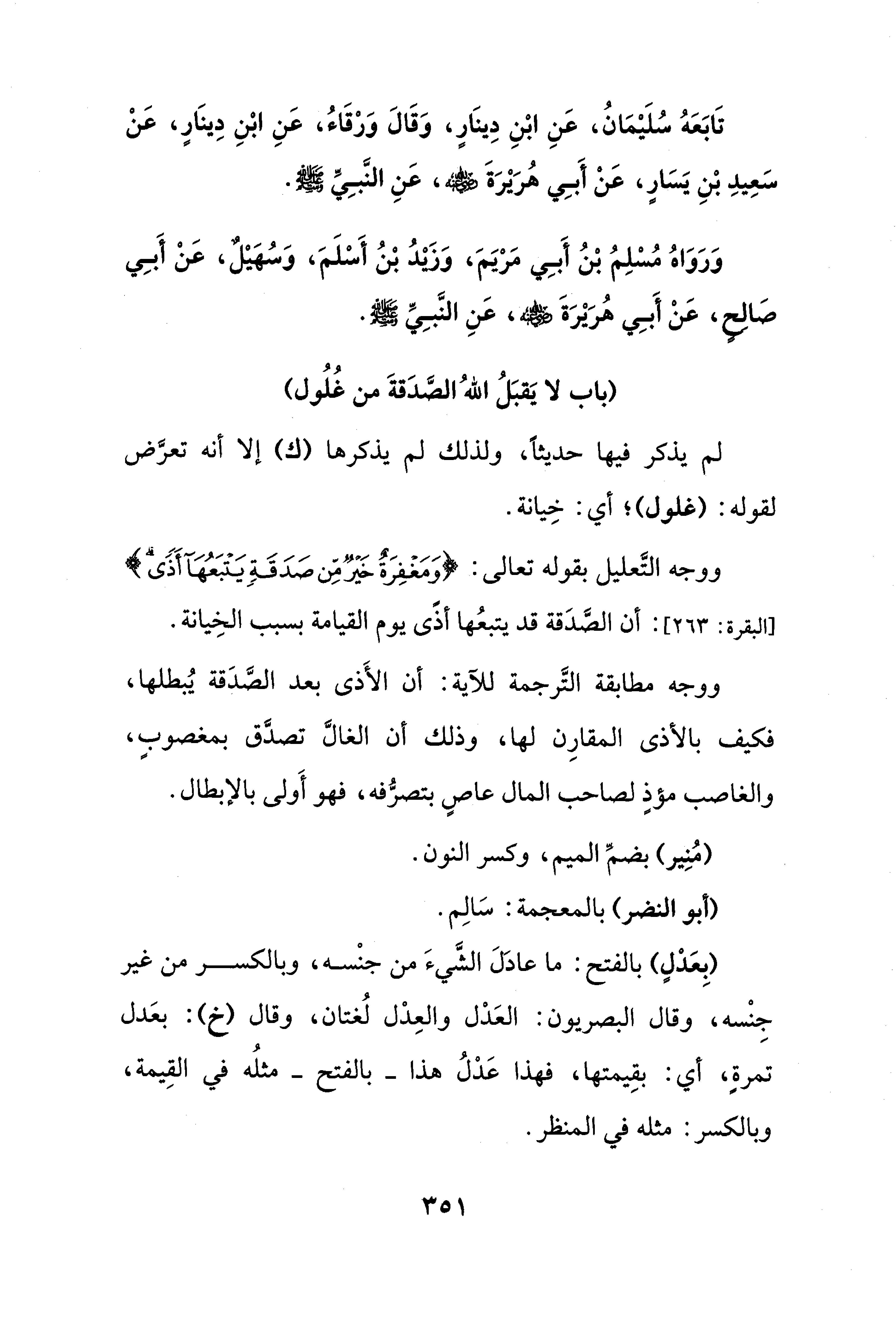 (باب لا يَقبَلُ اللهُ الصَّدَقةَ من غُلُول)