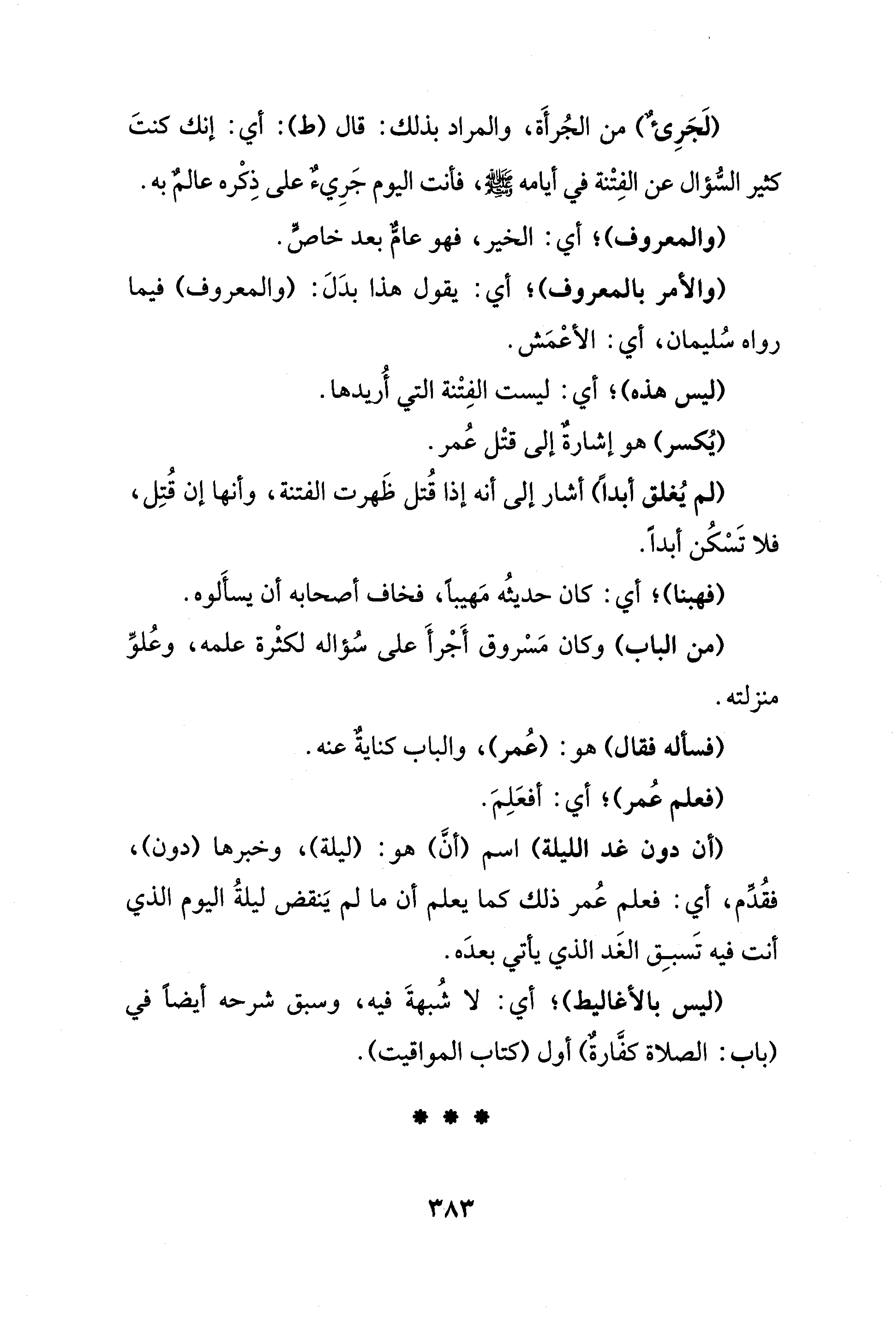 (من الباب) وكان مَسْروق أَجْرأَ على سُؤاله لكثْرة علمه، وعُلوِّ منزلته.