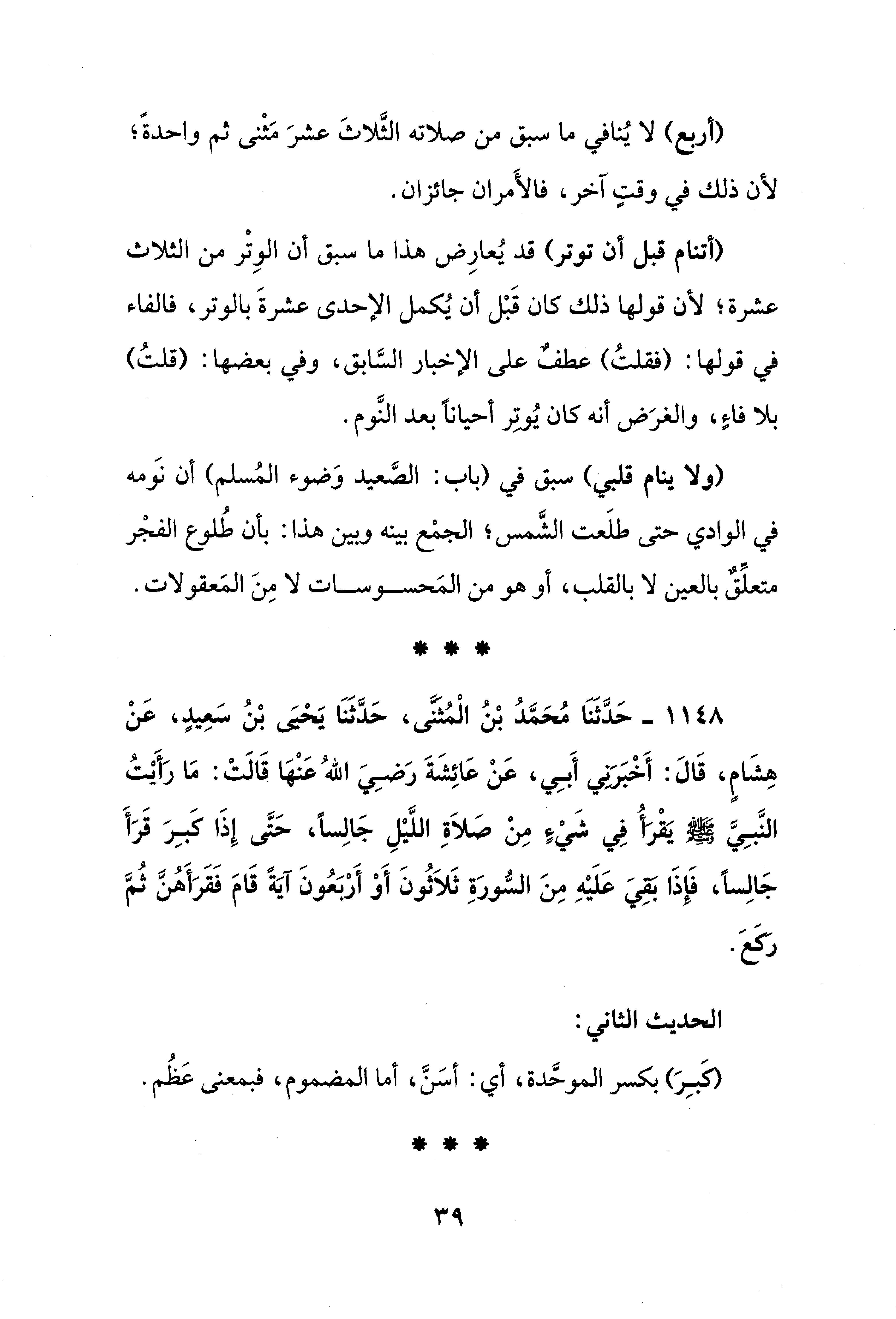 (أتنام قبل أن توتر) قد يُعارِض هذا ما سبق أن الوِتْر من الثلاث عشرة؛ لأن قولها ذلك كان قَبْل أن يُكمل الإحدى عشرةَ بالوتر، فالفاء في قولها: (فقلتُ) عطفٌ على الإخبار السَّابق، وفي بعضها: (قلتُ) بلا فاءٍ، والغرَض أنه كان يُوتر أحيانًا بعد النَّوم.