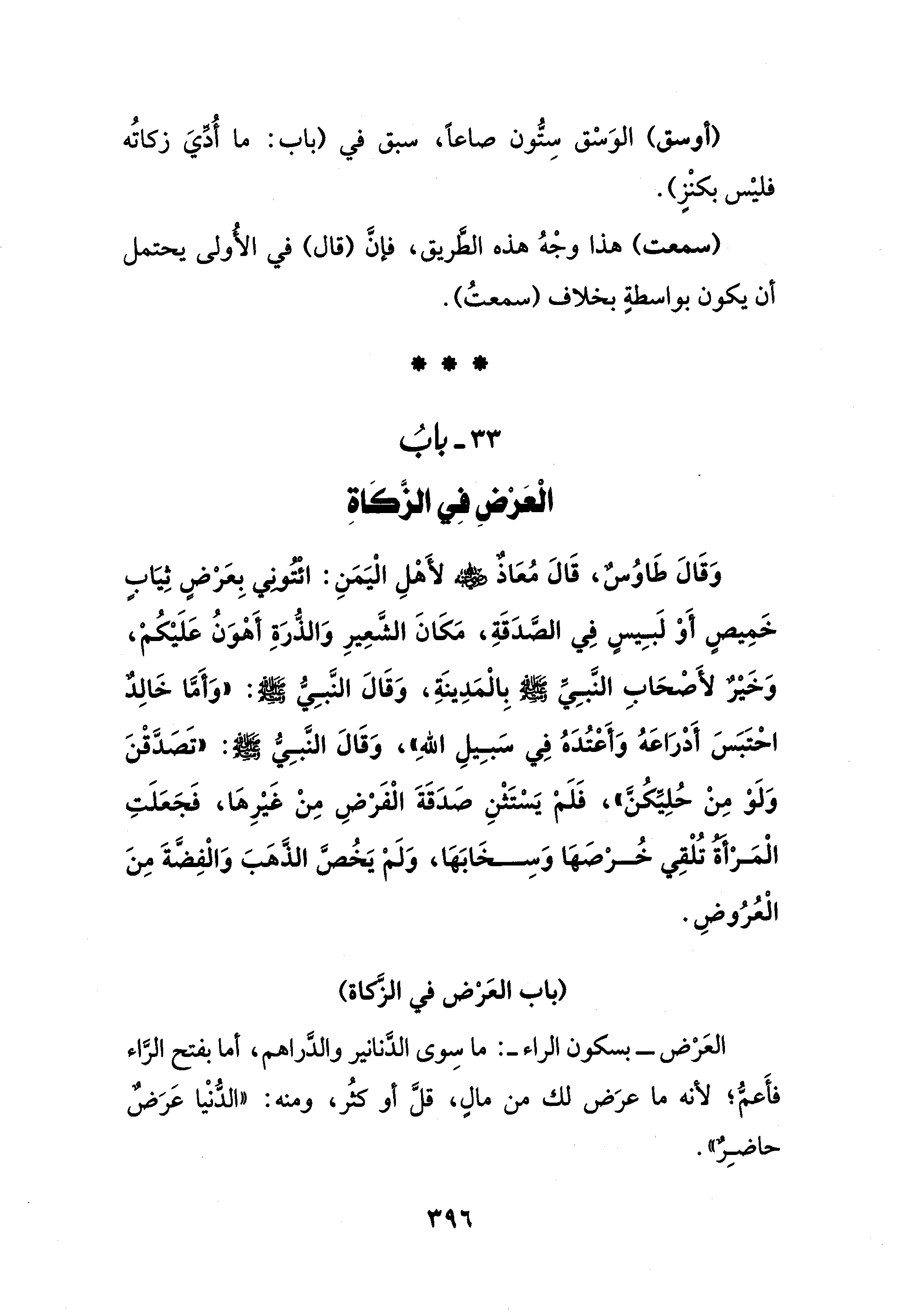 33 - بابُ الْعَرْضِ فِي الزَّكَاةِ