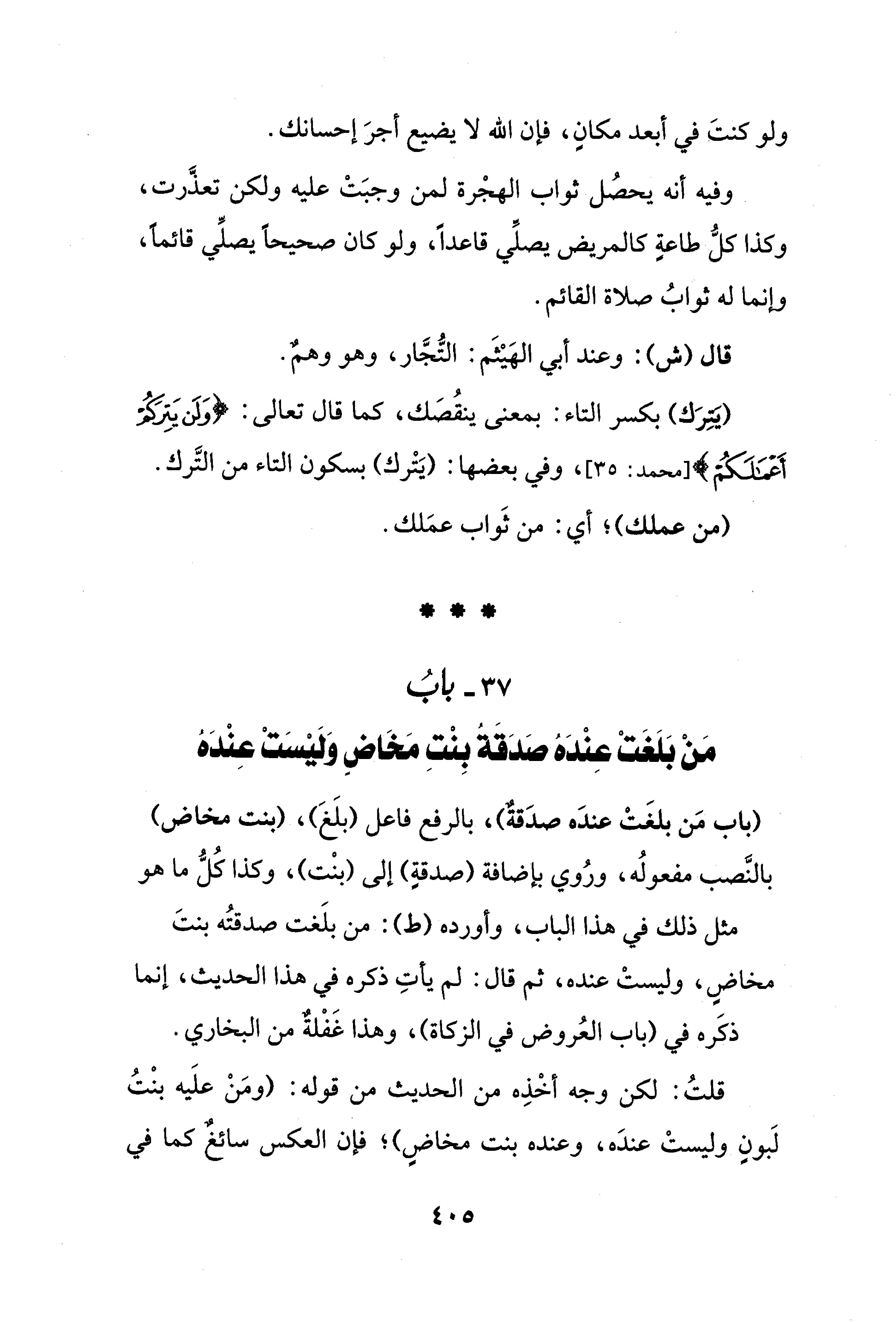 وفيه أنه يحصُل ثواب الهجْرة لمن وجبَتْ عليه ولكن تعذَّرت، وكذا كلُّ طاعةٍ كالمريض يصلِّي قاعدًا، ولو كان صحيحًا يصلِّي قائمًا، وإنما له ثوابُ صلاة القائم.