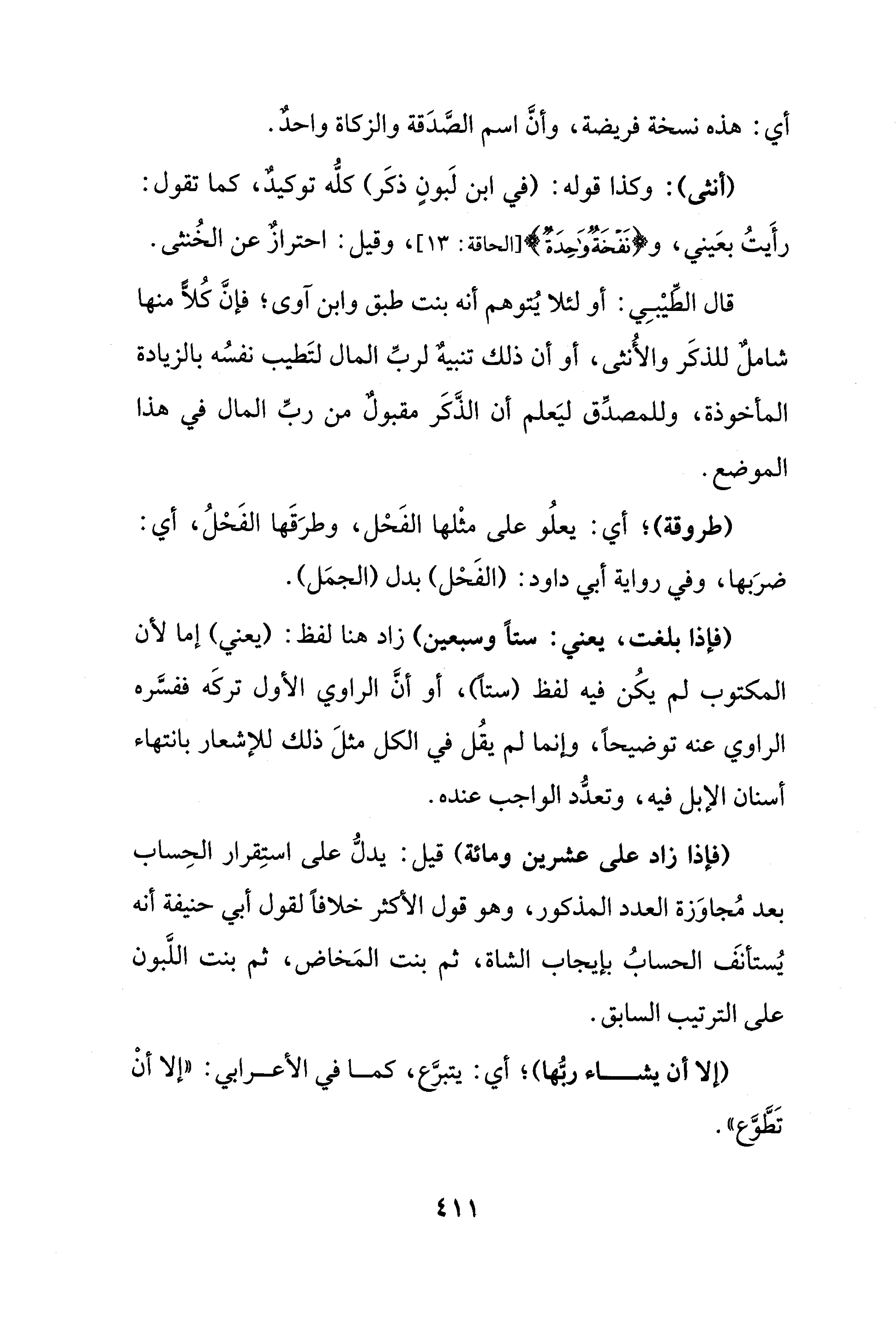 (فإذا زاد على عشرين ومائة) قيل: يدلُّ على استِقرار الحِساب بعد مُجاوَزة العدد المذكور، وهو قول الأكثر خلافًا لقول أبي حنيفة أنه يُستأنَف الحسابُ بإيجاب الشاة، ثم بنت المَخاض، ثم بنت اللَّبون على الترتيب السابق.