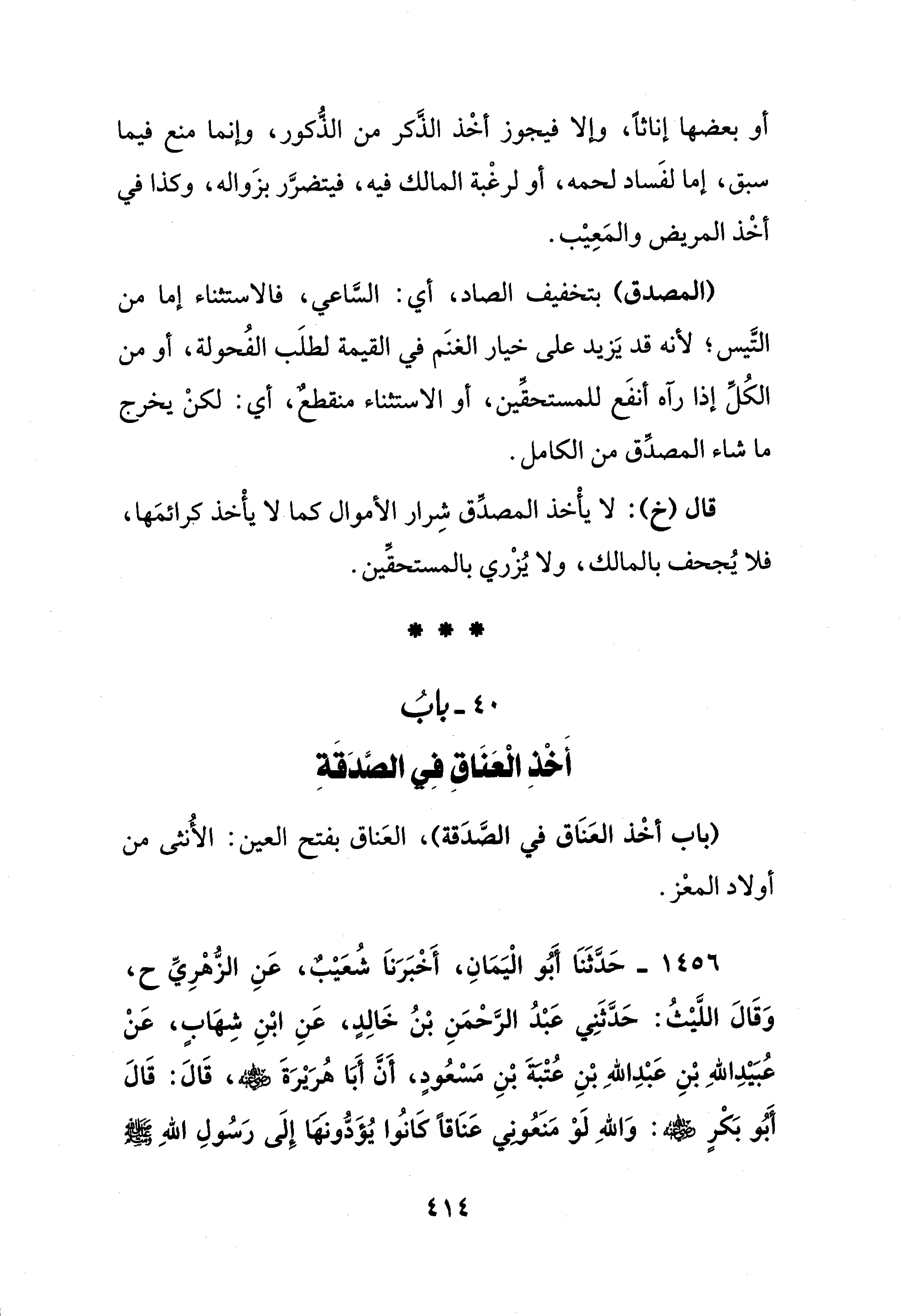40 - بابُ أَخْذِ العَنَاقِ فِي الصَّدَقَةِ