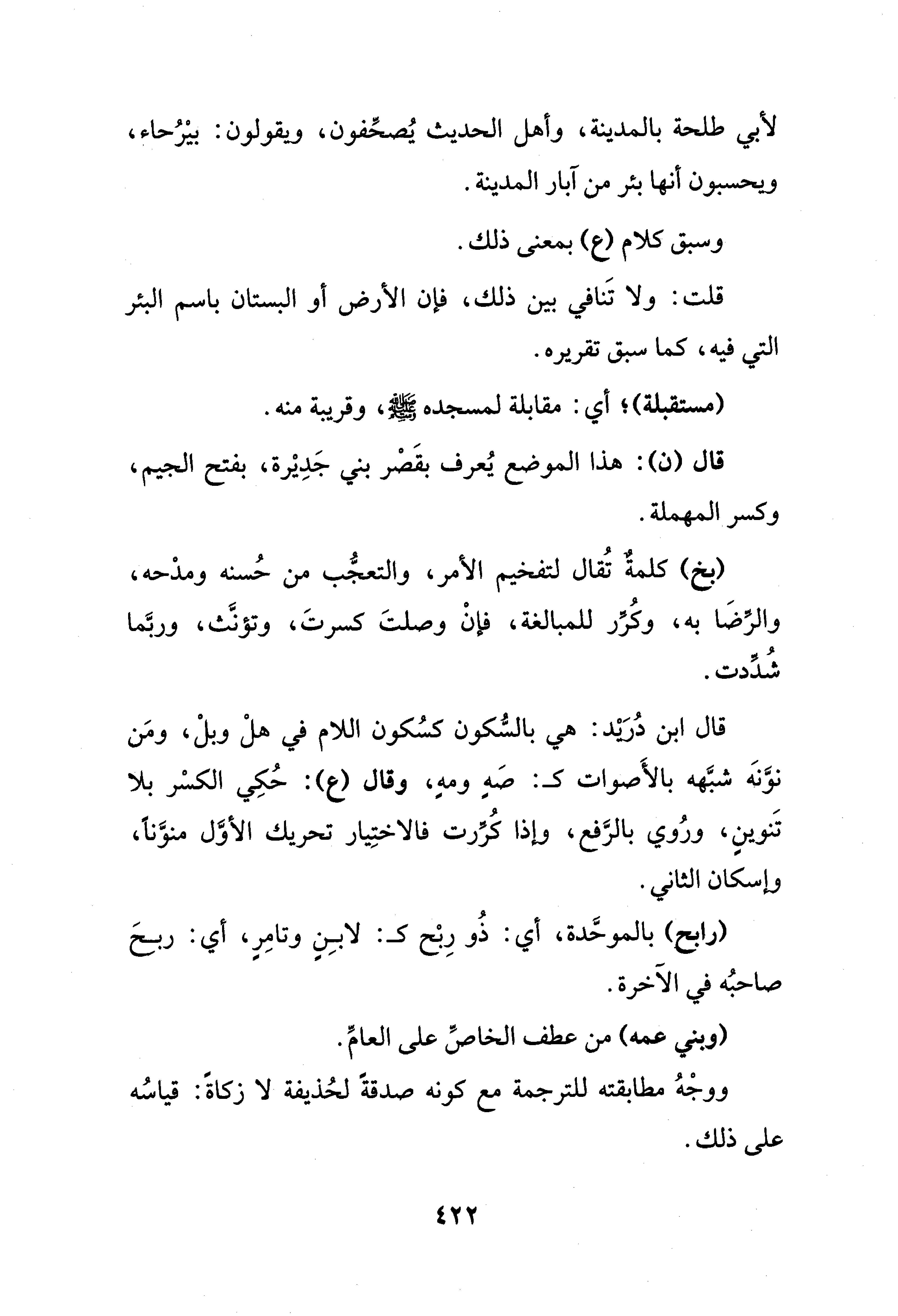لأبي طلحة بالمدينة، وأهل الحديث يُصحِّفون، ويقولون: بيْرُحاء، ويحسبون أنها بئر من آبار المدينة.