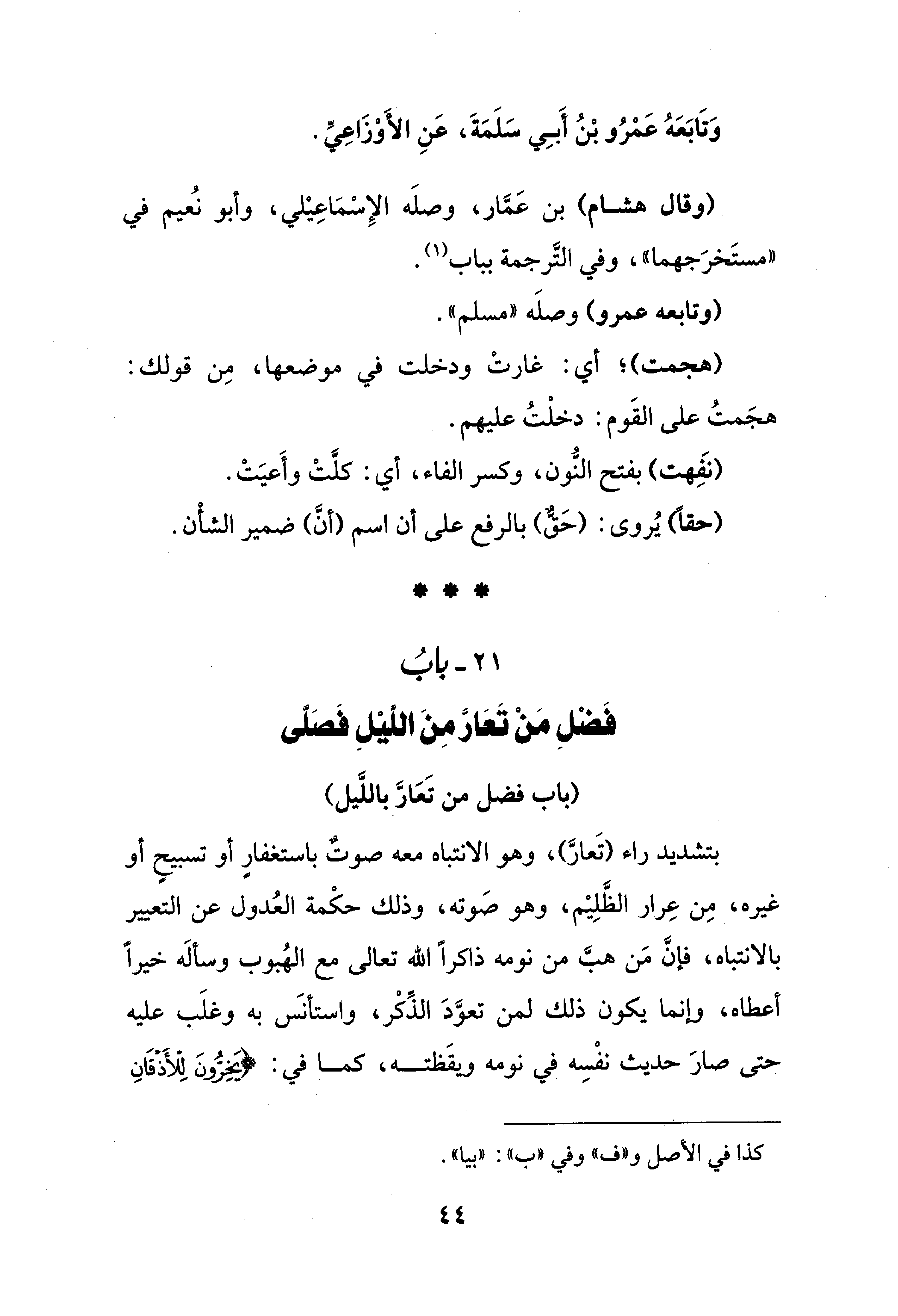 21 - بابُ فَضْلِ مَنْ تَعَارَّ مِنَ اللَّيلِ فَصَلَّى