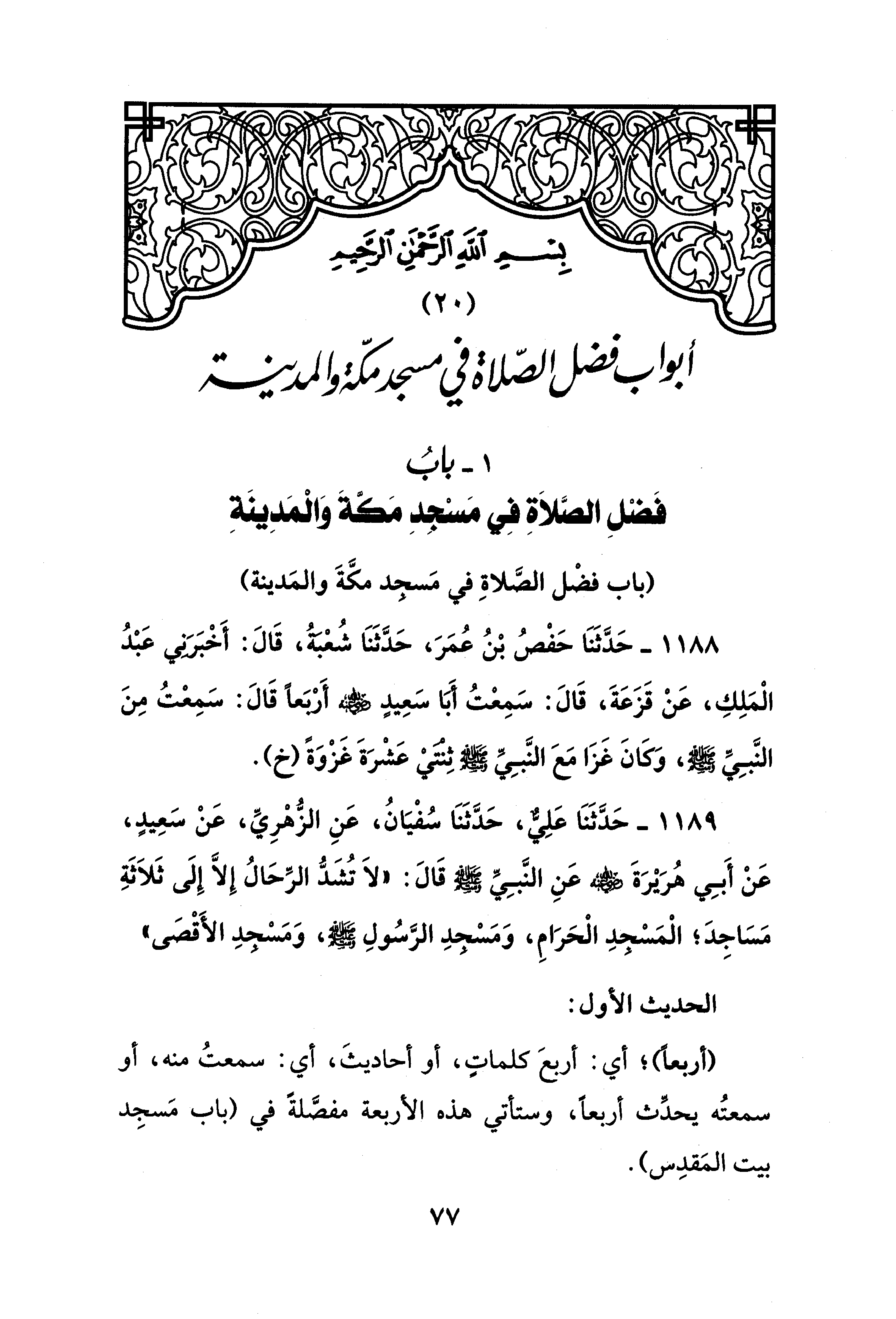 1 - بابُ فضْل الصَّلاةِ في مَسجد مكَّةَ والمَدينة