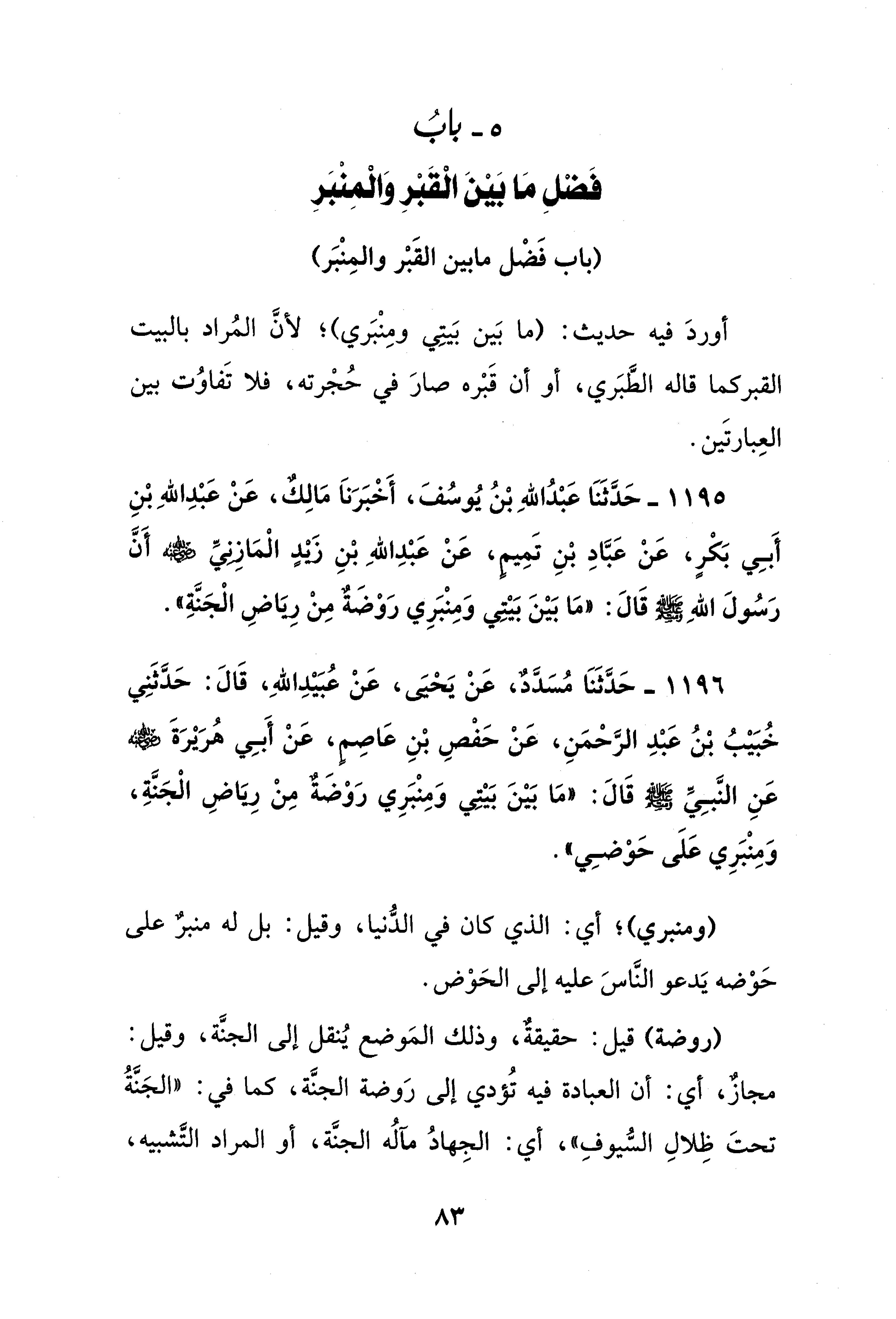 5 - بابُ فَضْلِ مَا بَيْنَ الْقَبْرِ وَالْمِنْبَرِ