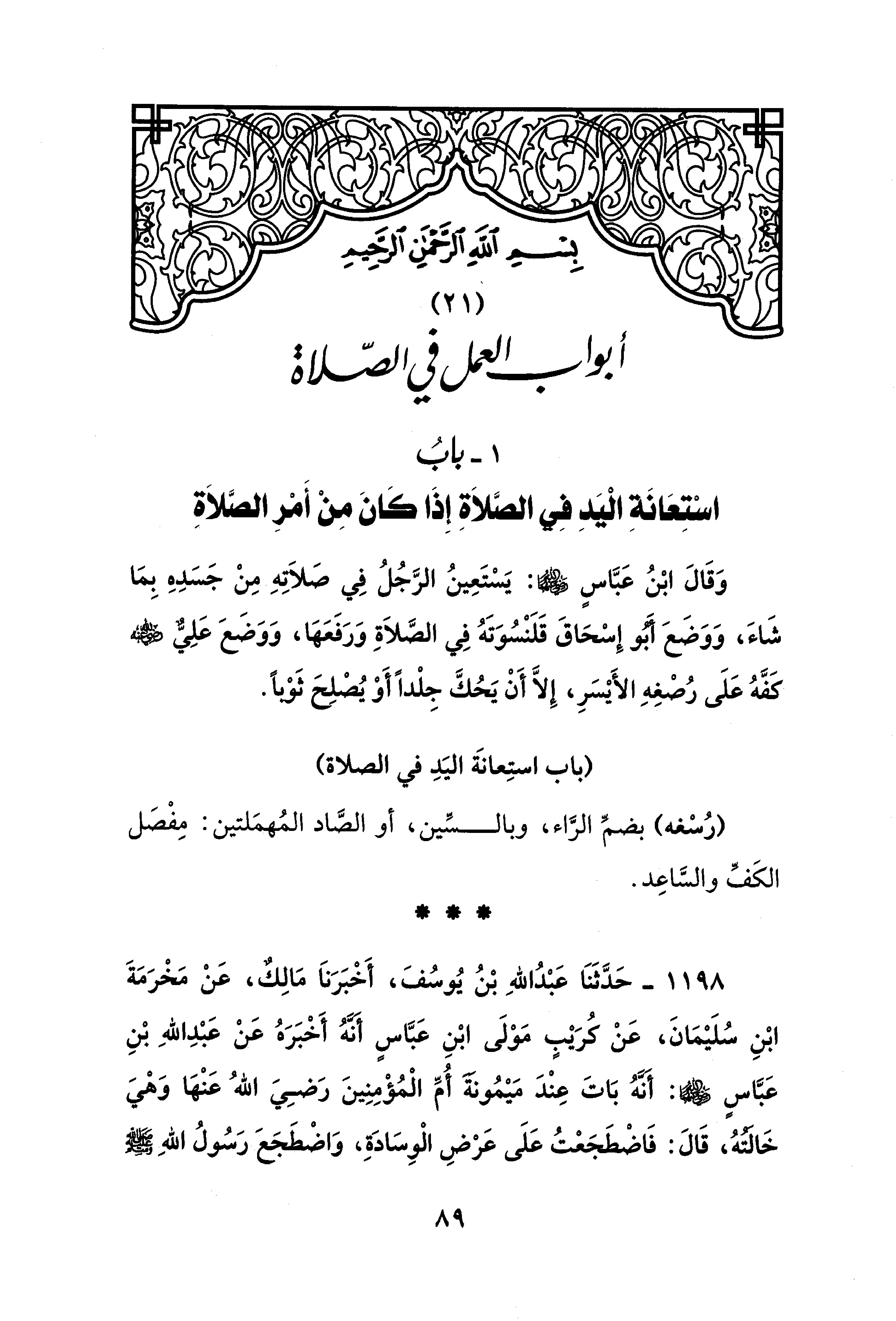 1 - بابُ اسْتِعَانَةِ الْيَدِ في الصَّلَاةِ إِذَا حَانَ مِنْ أَمْرِ الصَّلَاةِ