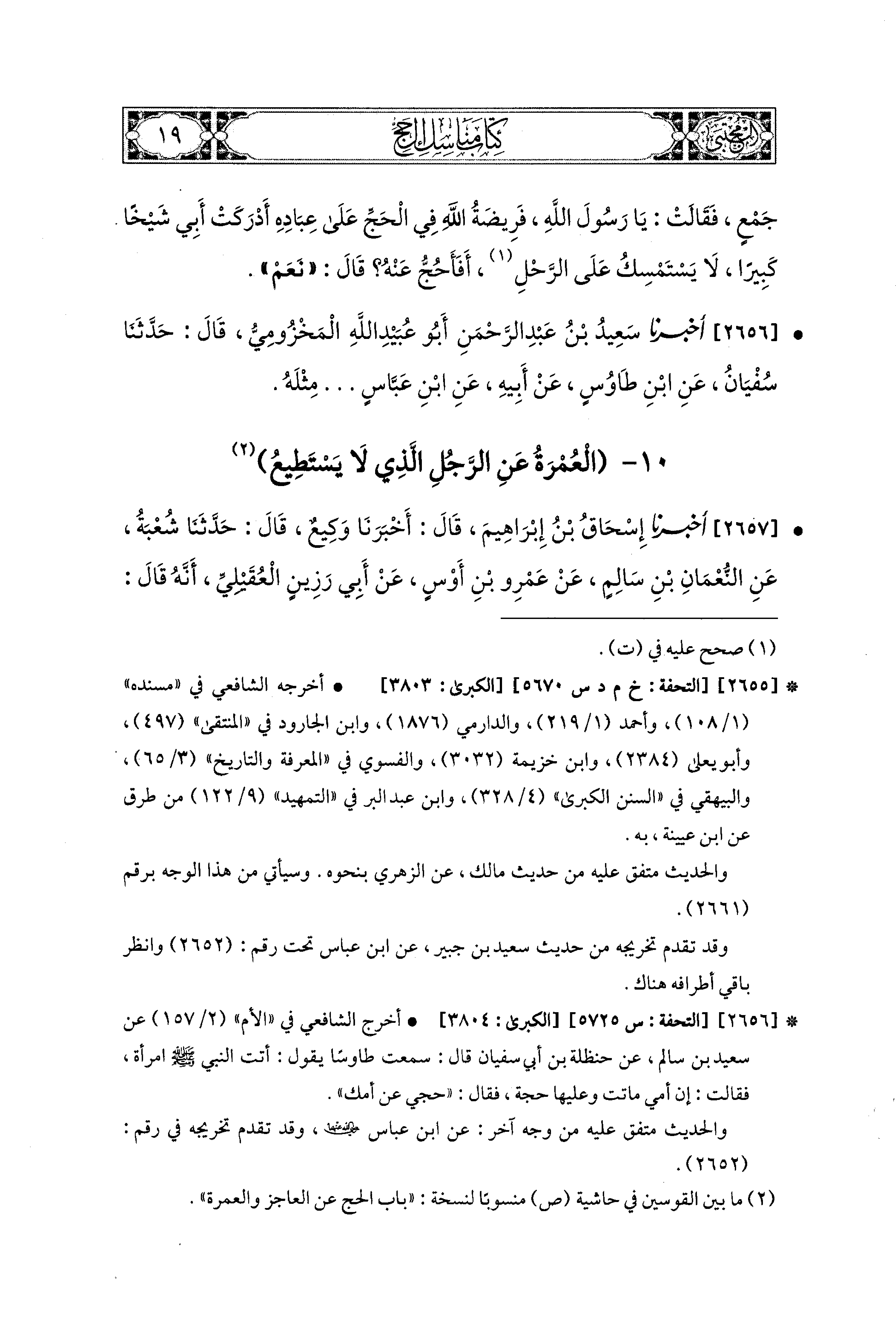 10 - العُمْرَةُ عَنِ الرَّجُلِ الَّذِي لاَ يَسْتَطِيعُ.