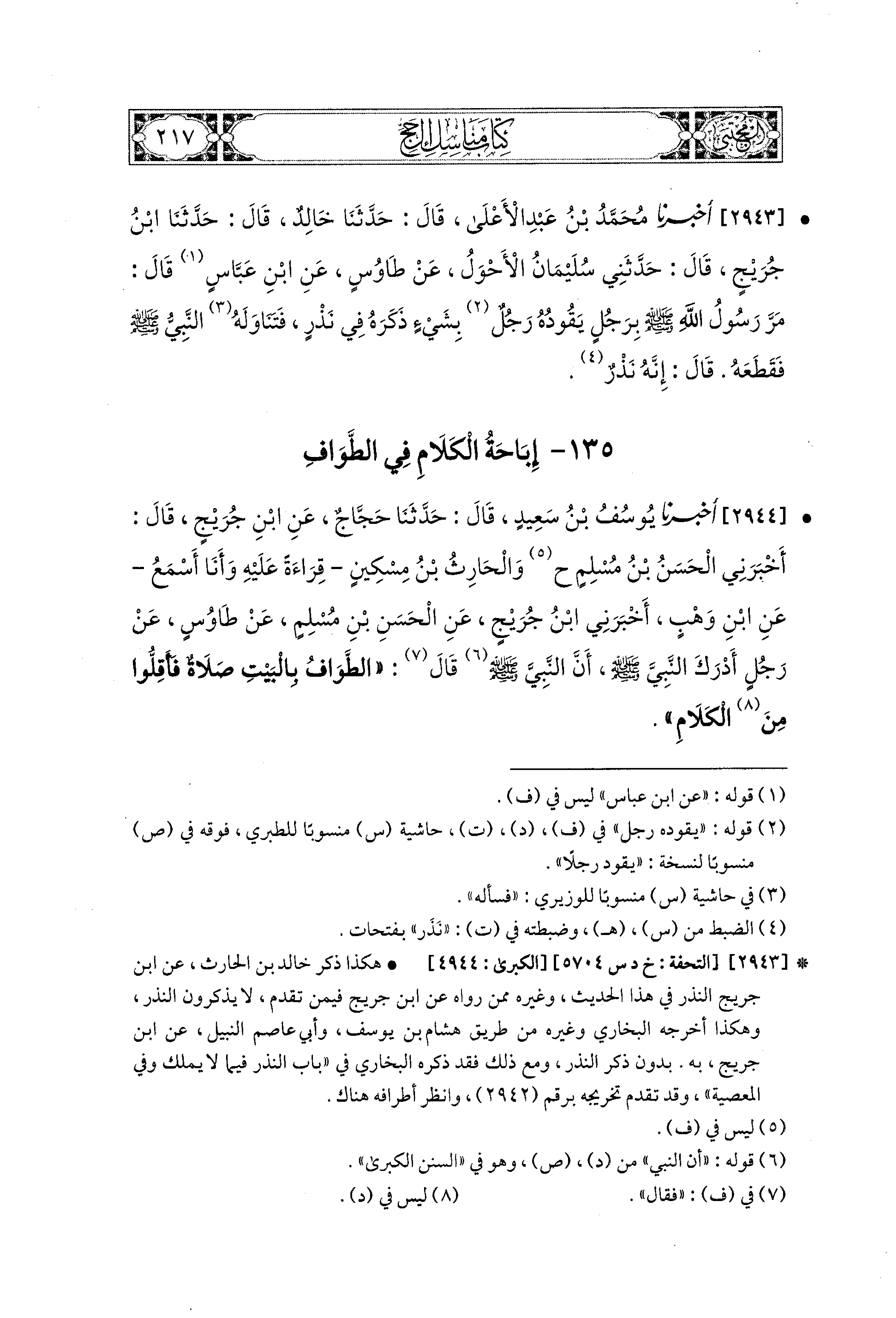 135 - إِبَاحَةُ الكَلاَمِ فِي الطَّوَافِ.