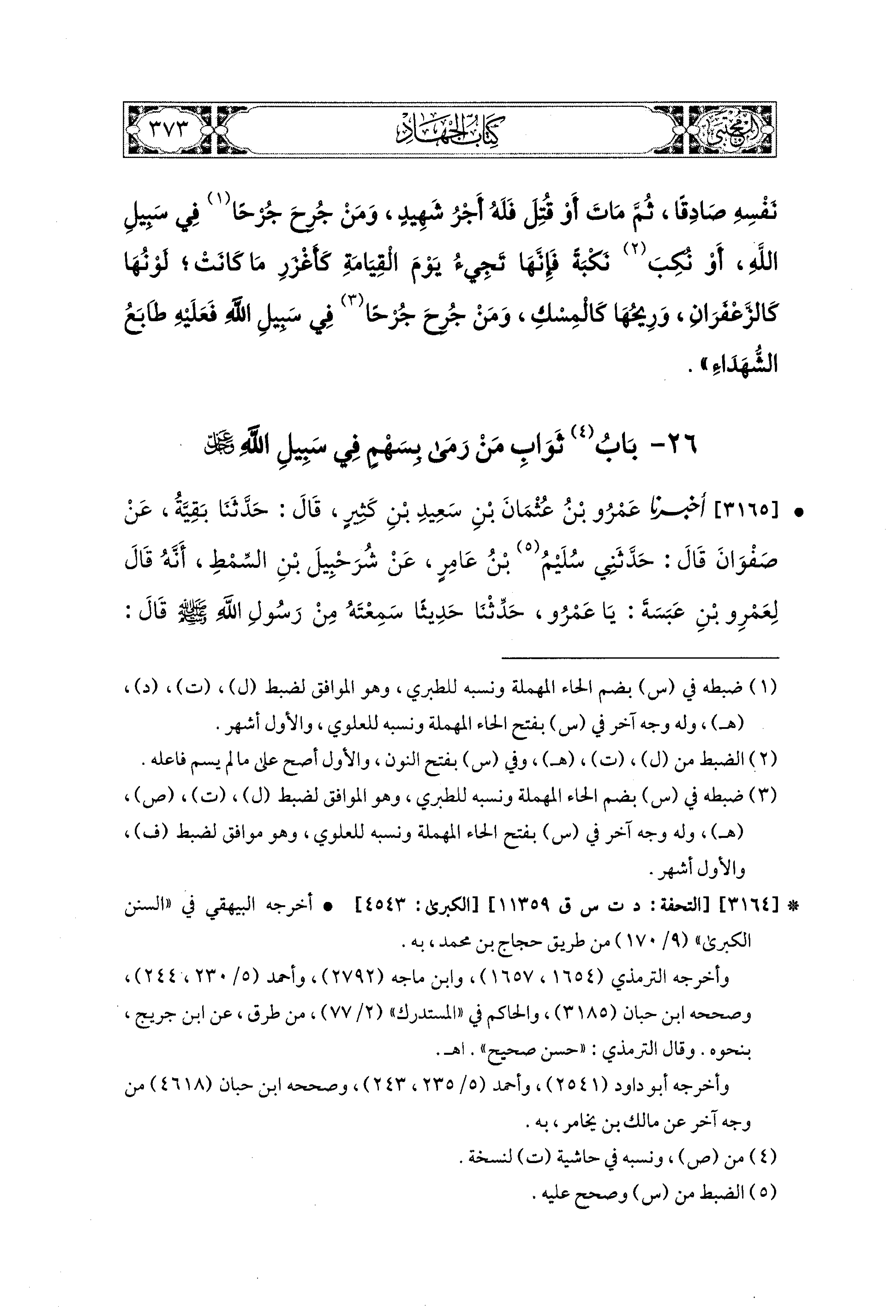 26 - بَابُ ثَوَابُ مَنْ رَمَى بِسَهْمٍ فِي سَبِيلِ اللهِ عَزَّ وَجَلَّ.