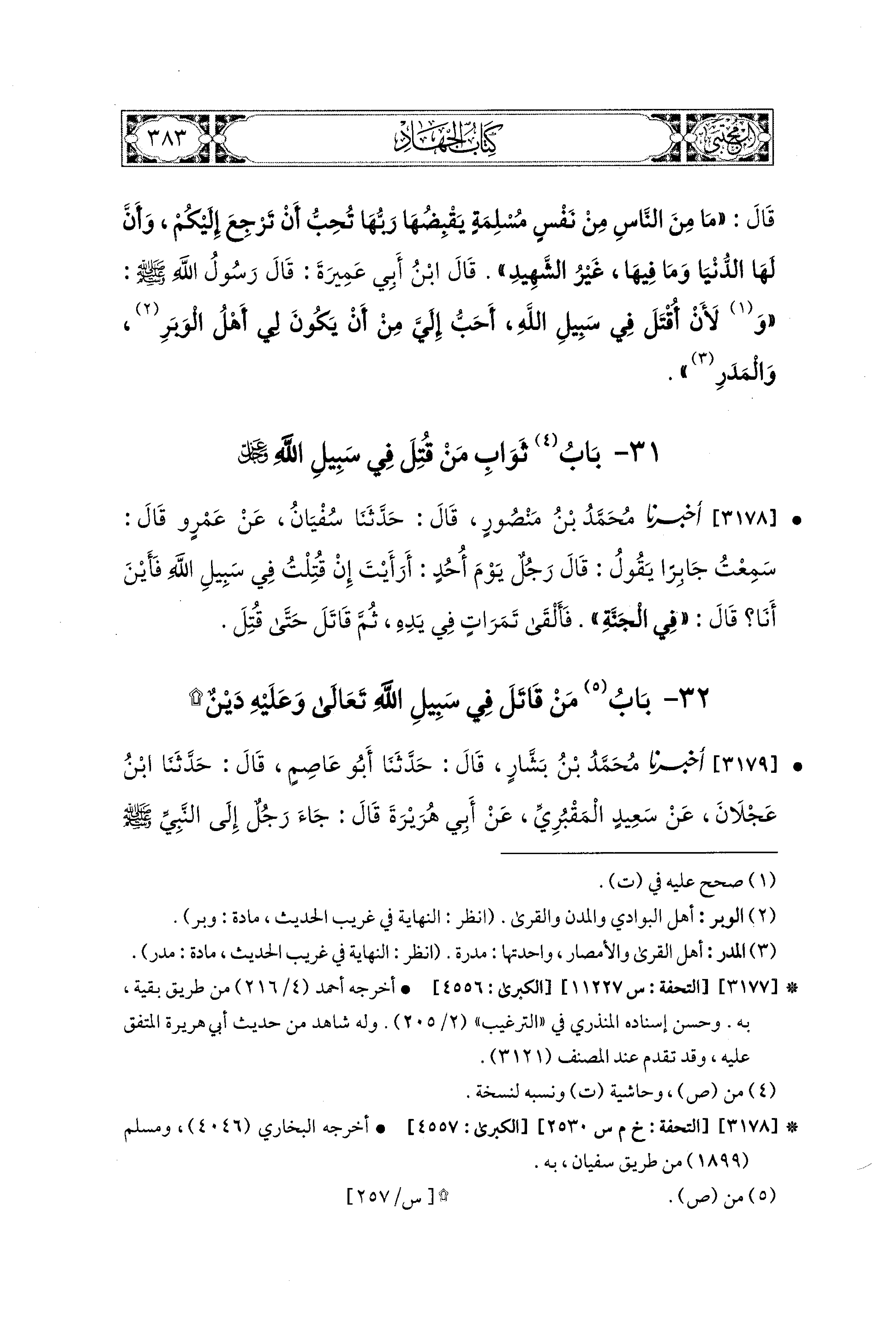 31 - بَابُ ثَوَابُ مَنْ قُتِلَ فِي سَبِيلِ اللهِ عَزَّ وَجَلَّ.