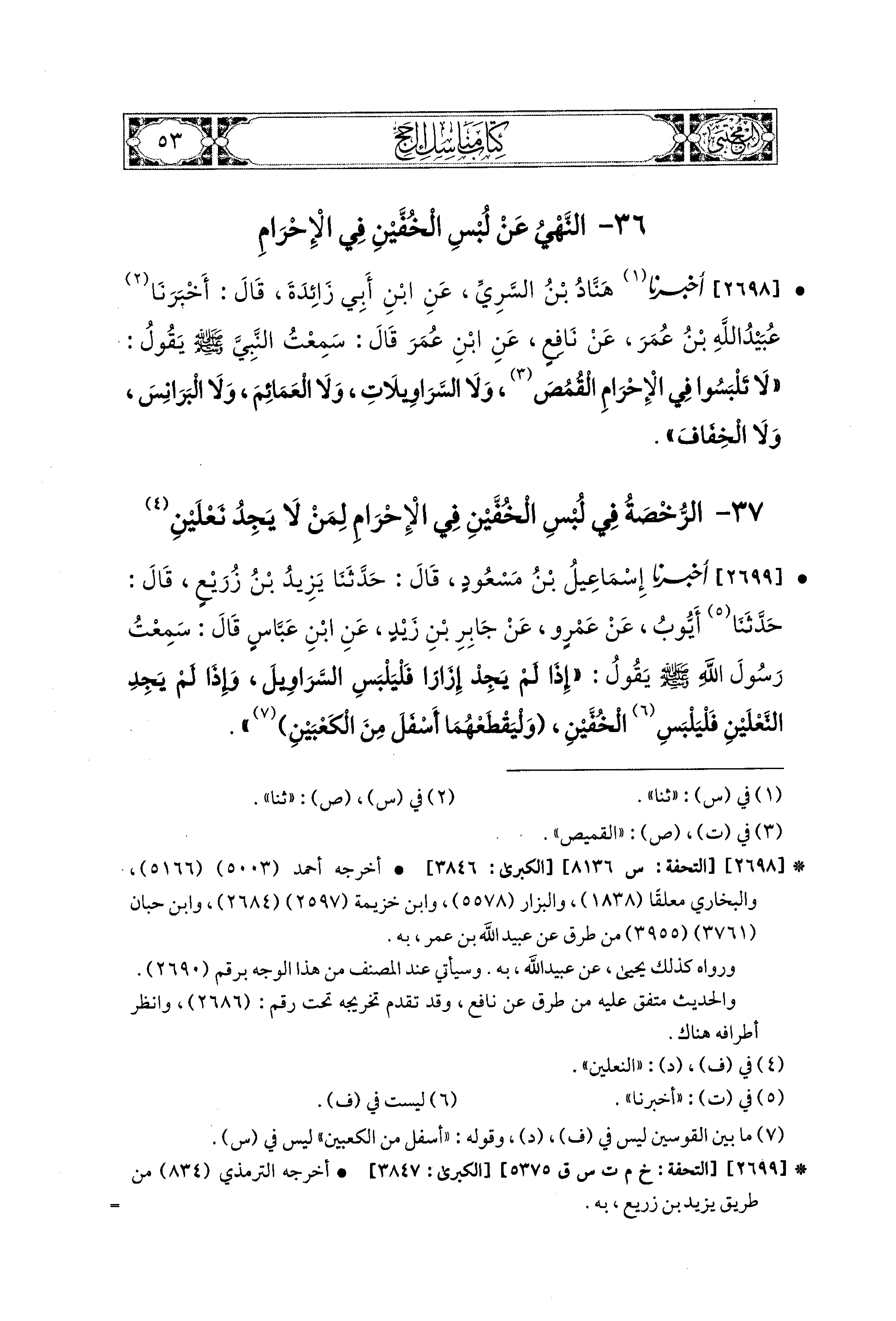 36 - النَّهْيُ عَن لُبْسِ الخُفَّيْنِ فِي الإِحْرَامِ.