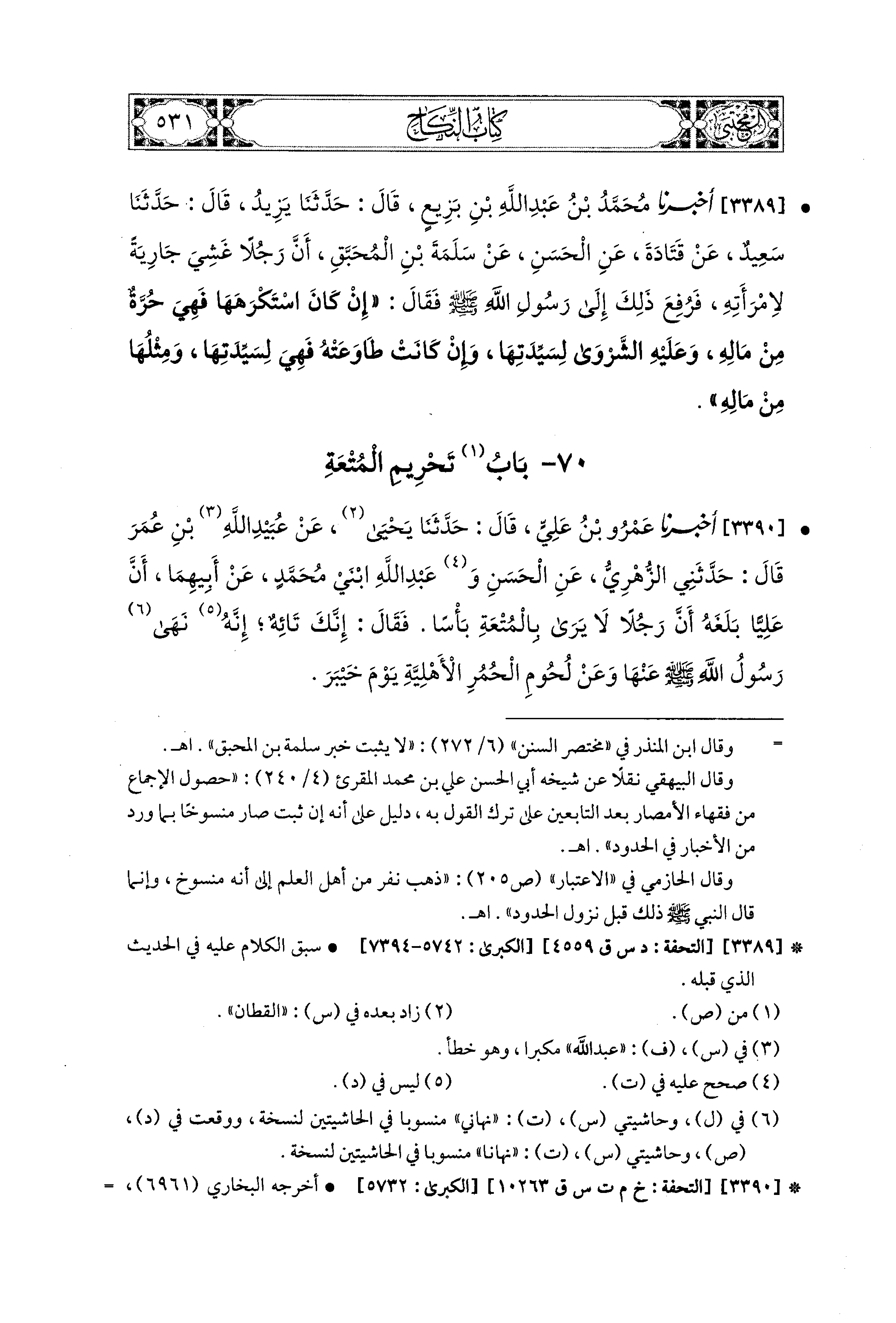70 - بَابُ تَحْرِيمُ المُتْعَةِ.