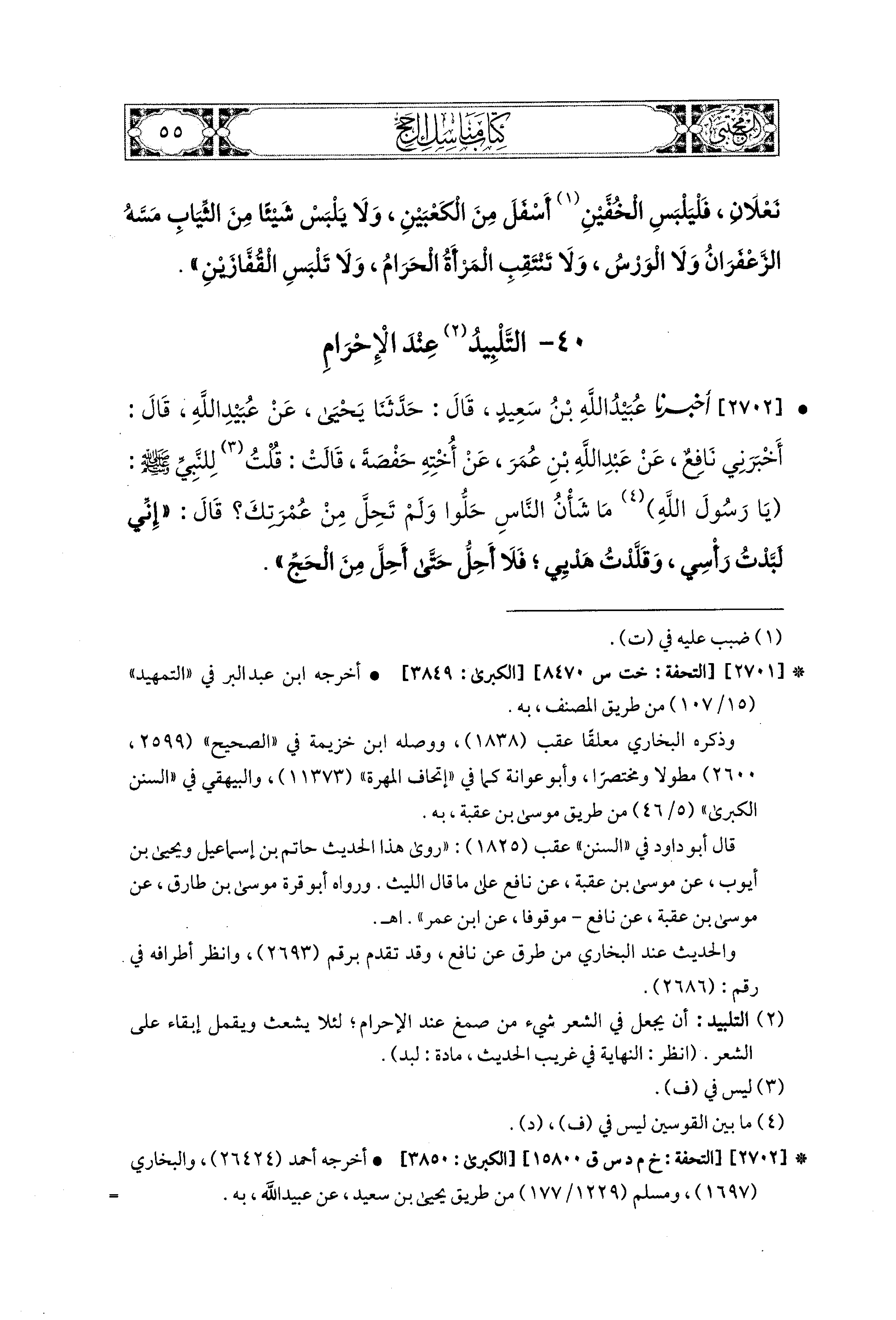 40 - التَّلْبِيدُ عِنْدَ الإِحْرَامِ.