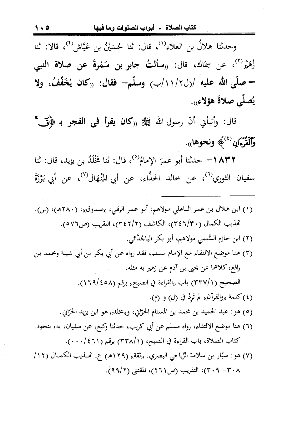 1832 - حدثنا أَبو عمرَ الإمامُ (¬1)، قال: ثنا مَخْلَدُ بن يزيد، قال: ثنا سفيان الثوري (¬2)، عن خالد الحذَّاء، عن أبي المِنْهَال (¬3)، عن أبي بَرْزَةَ