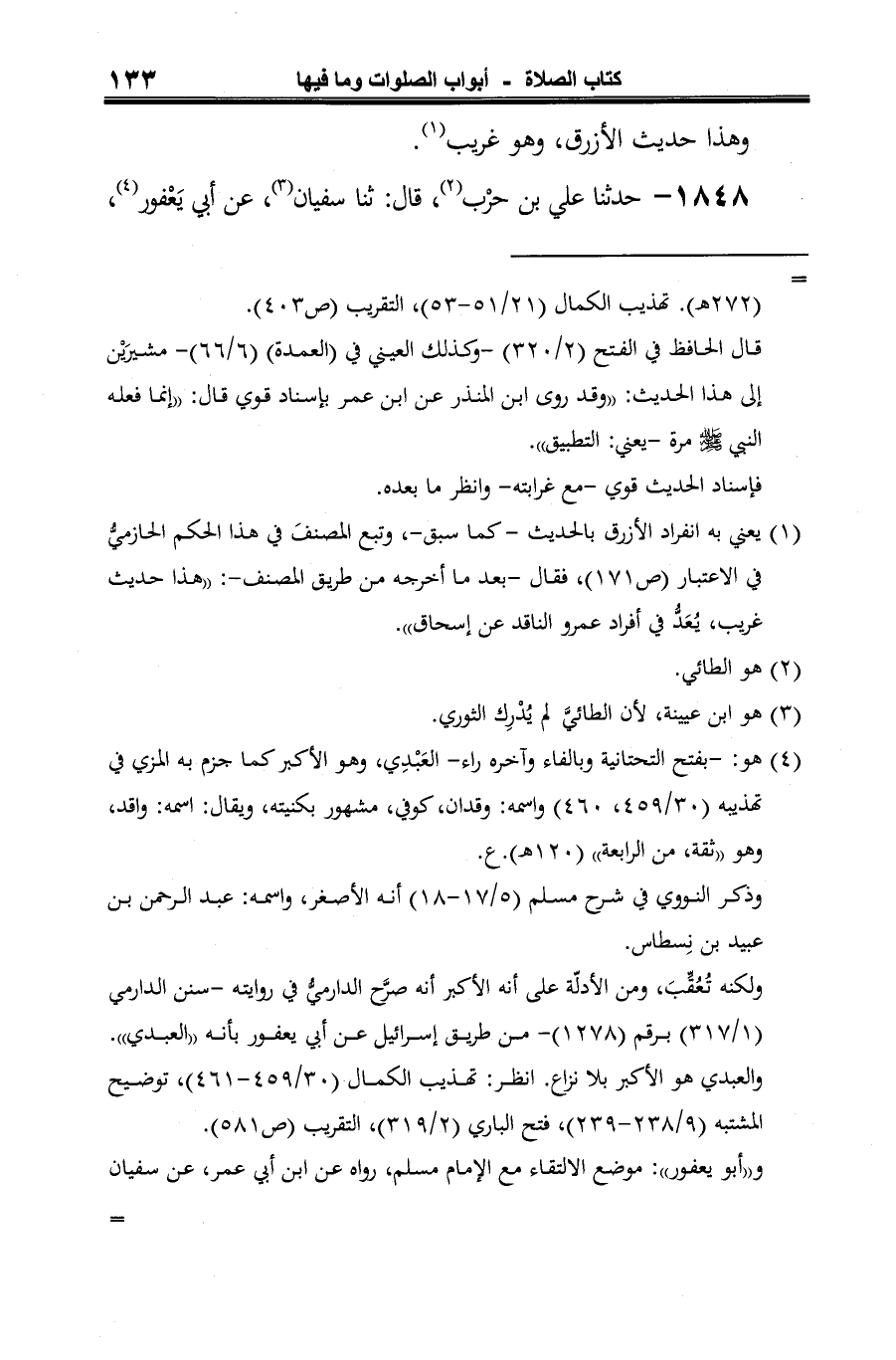 و"أَبو يعفور": موضع الالتقاء مع الإمام مسلم، رواه عن ابن أَبي عمر، عن سفيان =