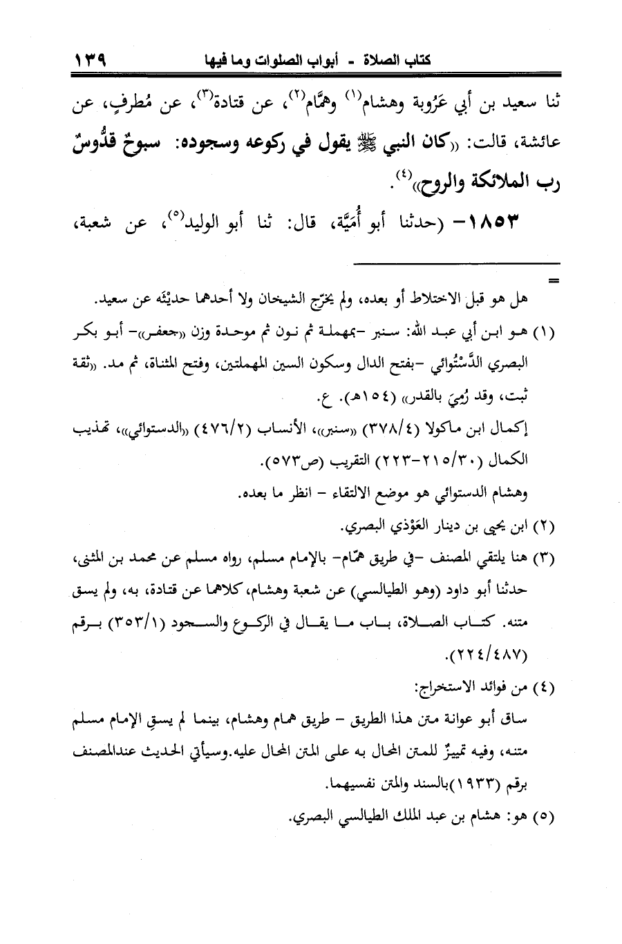 (¬3) انفرد أَبو الوليد هشام بن عبد الملك في هذه الرواية عن شعبة بذكر السجود دون الركوع؛ وأصحاب شعبة -غيره- ما بين ذاكرٍ للركوع والسجود، ومقتصرٍ على الركوع، وأما الاقتصار على السجود ففي رواية أبي الوليد فقط -على ما علمتُ- وتفصيل ذلك كما يلي: