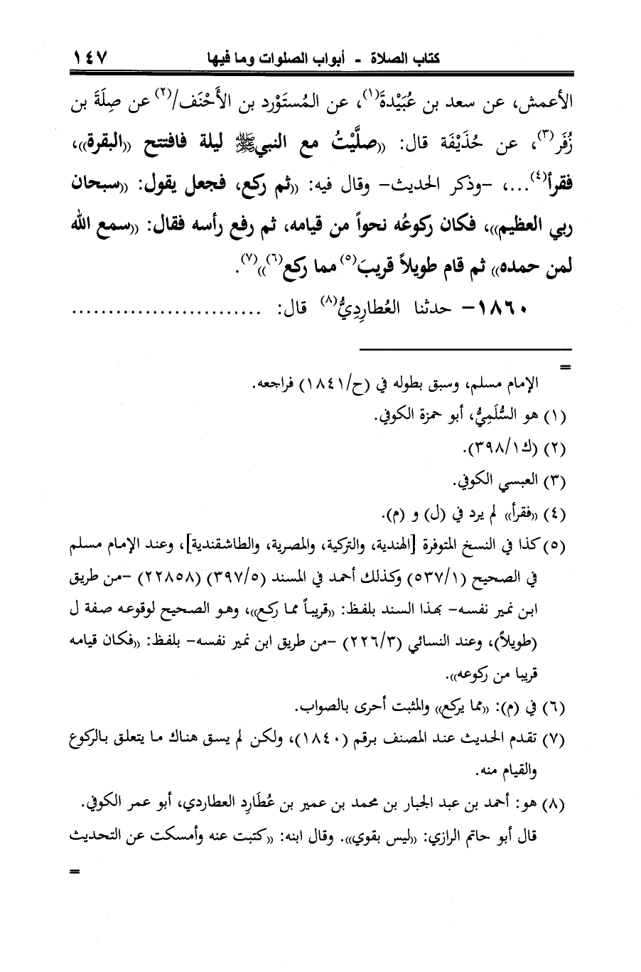 وقد خالف ابنُ فضيل جميع هؤلاء، فأسقط الواسطة بين سعد وصلة، وقد تابعه على ذلك الثوري عند عبد الرزاق في مصنفه (2875) (2/ 155) وعنه أحمد في المسند (5/ 389) (22800) مختصرا. ولكن الأعمش في طريق عبد الرزاق يروي عن صلة مباشرة وهو عن حذيفة، وأحسب أن هذا خطأ من الناسخ والصحيح إثبات سعد بن عُبَيْدَة كما في المسند. =