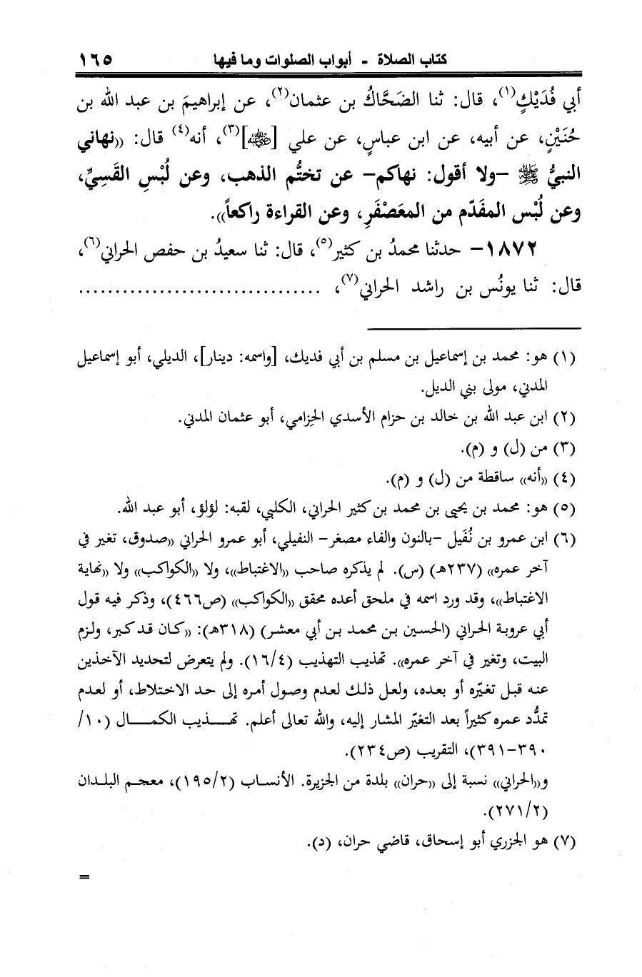 -[166]- عن محمدِ بن عمرو (¬4)، عن إبراهيمَ بن عبد الله بن حُنَيْن، عن أبيه، أنه سمع عليًّا [-رضي الله عنه-] (¬5) برحْبَة الكوفة يقول: "نهاني رسولُ الله -صلى الله عليه وسلم-ولا أقول: نهاكم- عن تختُّمِ الذهب، وأَنْ أقرأَ وأنا راكعٌ، وعن لُبْسِ القَسِيّ، وعن المعَصْفَرِ المفدَّم" (¬6).