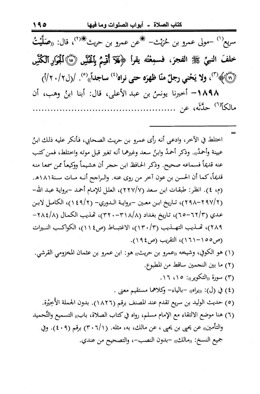 (¬1) هنا موضع الالتقاء مع الإمام مسلم، رواه في كتاب الصلاة، باب "التسميع والتَّحميد والتأمين" عن يحيى بن يحيى، عن مالك، به، مثله. (1/ 306) برقم (409). وفي جميع النسخ: "مالك" -بدون النصب-، والتصحيح من عندي.