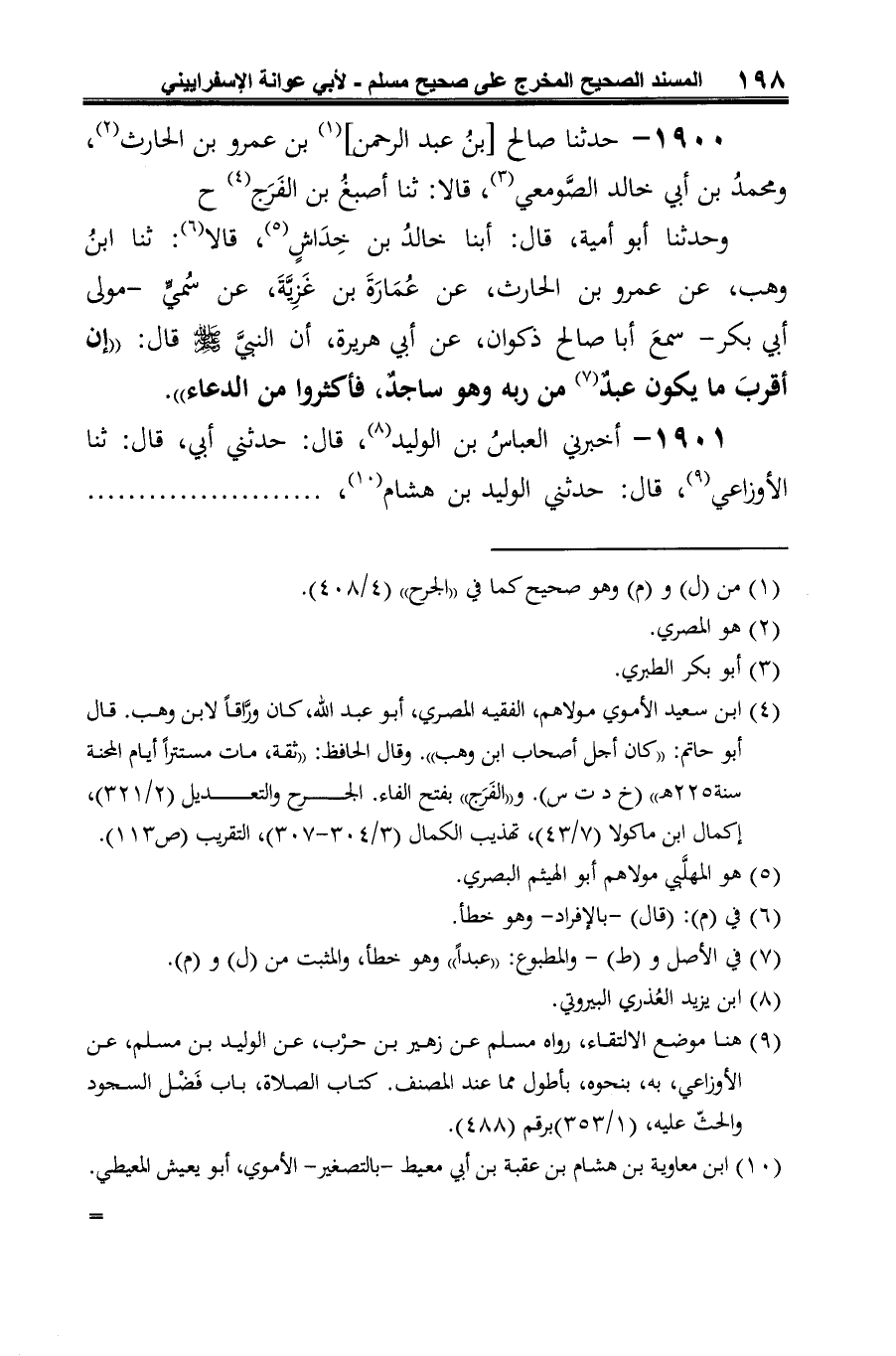 (¬9) من فوائد الاستخراج: أخرج أَبو عوانة -رحمه الله تعالى- عن الأوزاعي -من طريق الوليد بن مَزْيَد، بينما روى الإمام مسلم عن الأوزاعي- من طريق الوليد بن مسلم، =