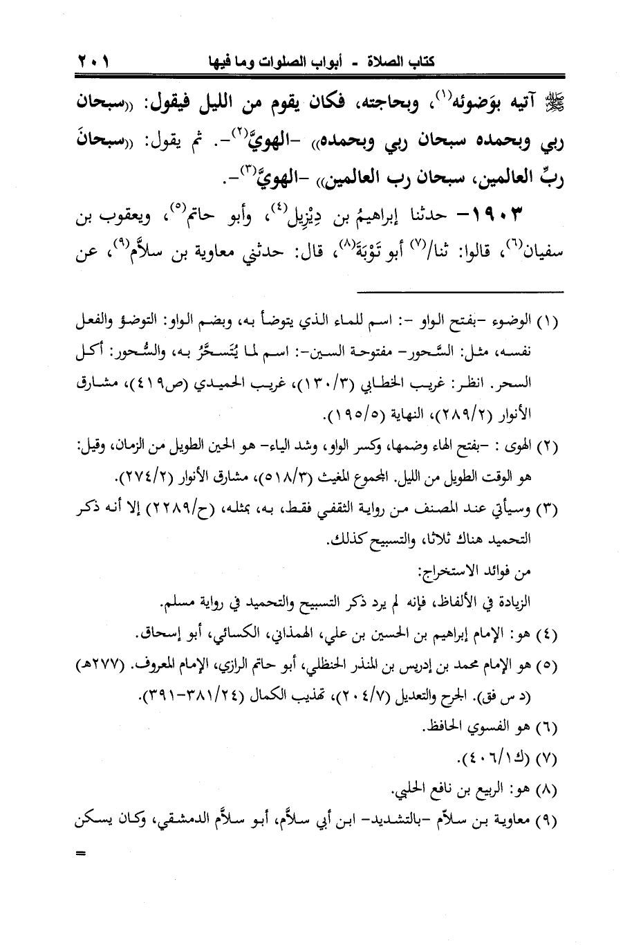 1903 - حدثنا إبراهيمُ بن دِيْزِيل (¬1)، وأبو حاتم (¬2)، ويعقوب بن سفيان (¬3)، قالوا: ثنا (¬4) أَبو تَوْبَةَ (¬5)، قال: حدثني معاوية بن سلَّام (¬6)، عن