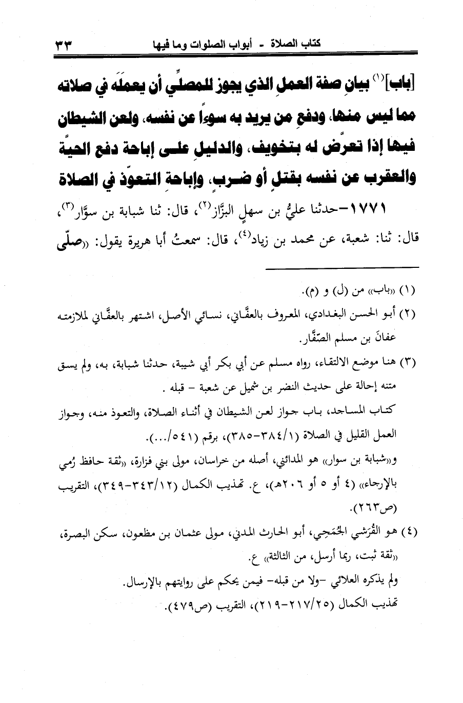 (¬9) وأخرجه البخاري في "العمل في الصلاة" (1210) باب: ما يجوز من العمل في الصلاة، (3/ 97، مع الفتح)، وكذلك في "بدء الخلق" (3284) باب: صفة إبليس وجنوده، (6/ 388) عن محمود (بن غيلان)، حدثنا شبابة، حدثنا شعبة، به، بنحوه.