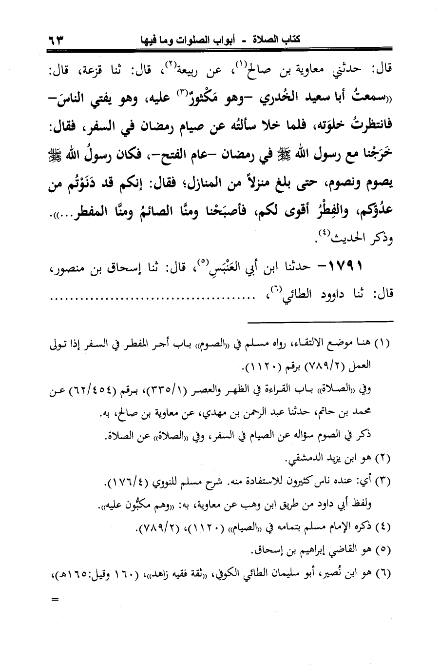 1791 - حدثنا ابن أبي العَنْبَسِ (¬1)، قال: ثنا إسحاق بن منصور، قال: ثنا داوود الطائي (¬2)،