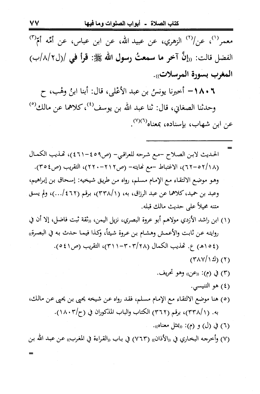 (¬2) هنا موضع الالتقاء مع الإمام مسلم، فقد رواه عن شيخه يحيى بن يحيى عن مالك، به. (1/ 338)، برقم (362) الكتاب والباب المذكوران في (ح / 1803).