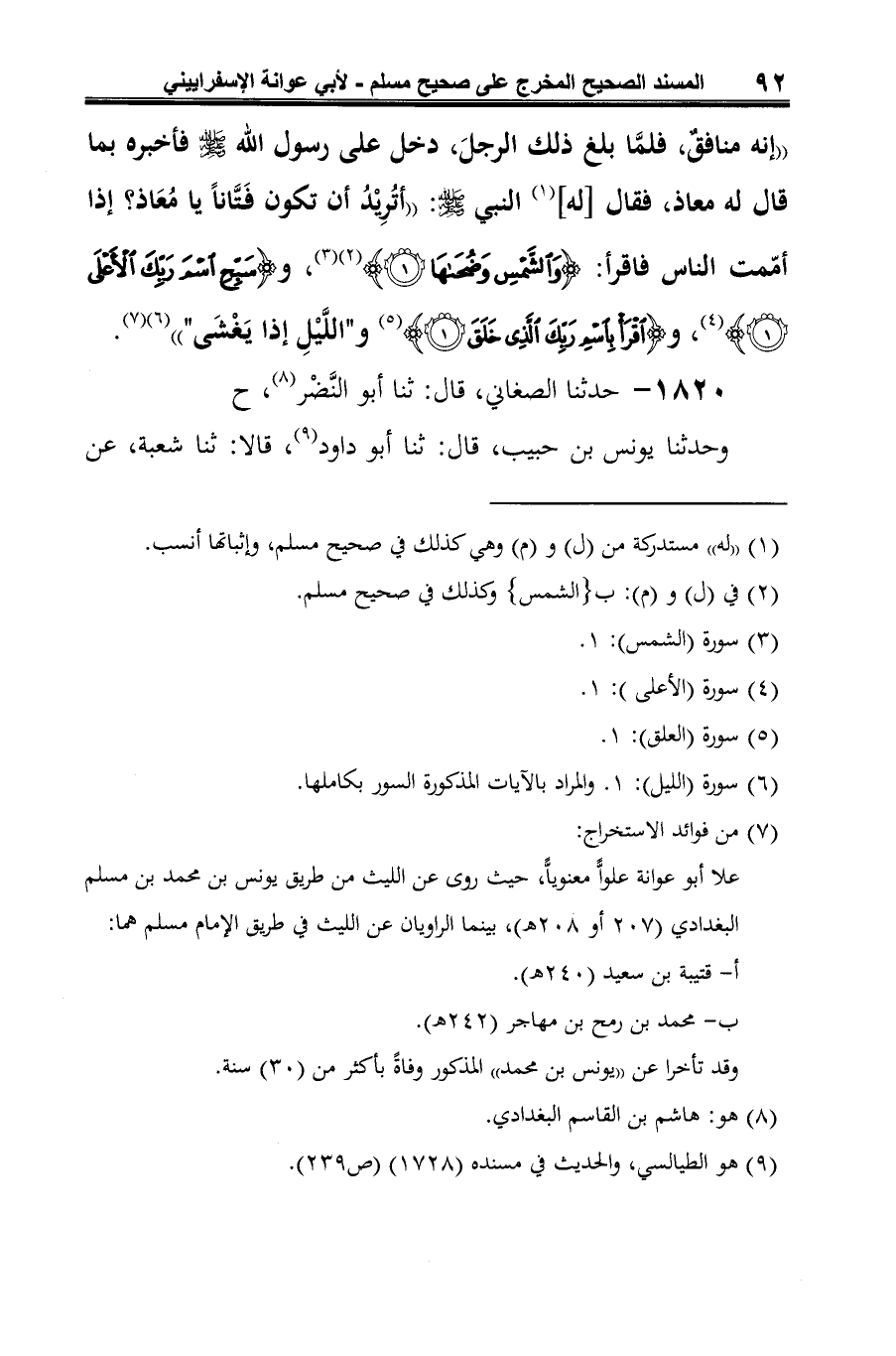 1820 - حدثنا الصغاني، قال: ثنا أَبو النَّضْر (¬1)، ح