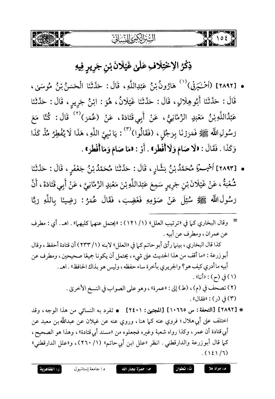 ذِكْرُ الاِخْتِلافِ عَلَى غَيْلانَ بْنِ جَرِيرٍ فِيهِ.