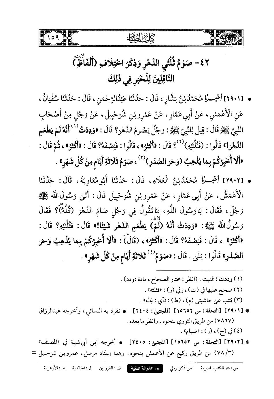 42- صَوْمُ ثُلُثَيِ الدَّهْرِ وَذِكْرُ اخْتِلافِ أَلفاظِ النَّاقِلِينَ لِلْخَبَرِ فِي ذَلِكَ.