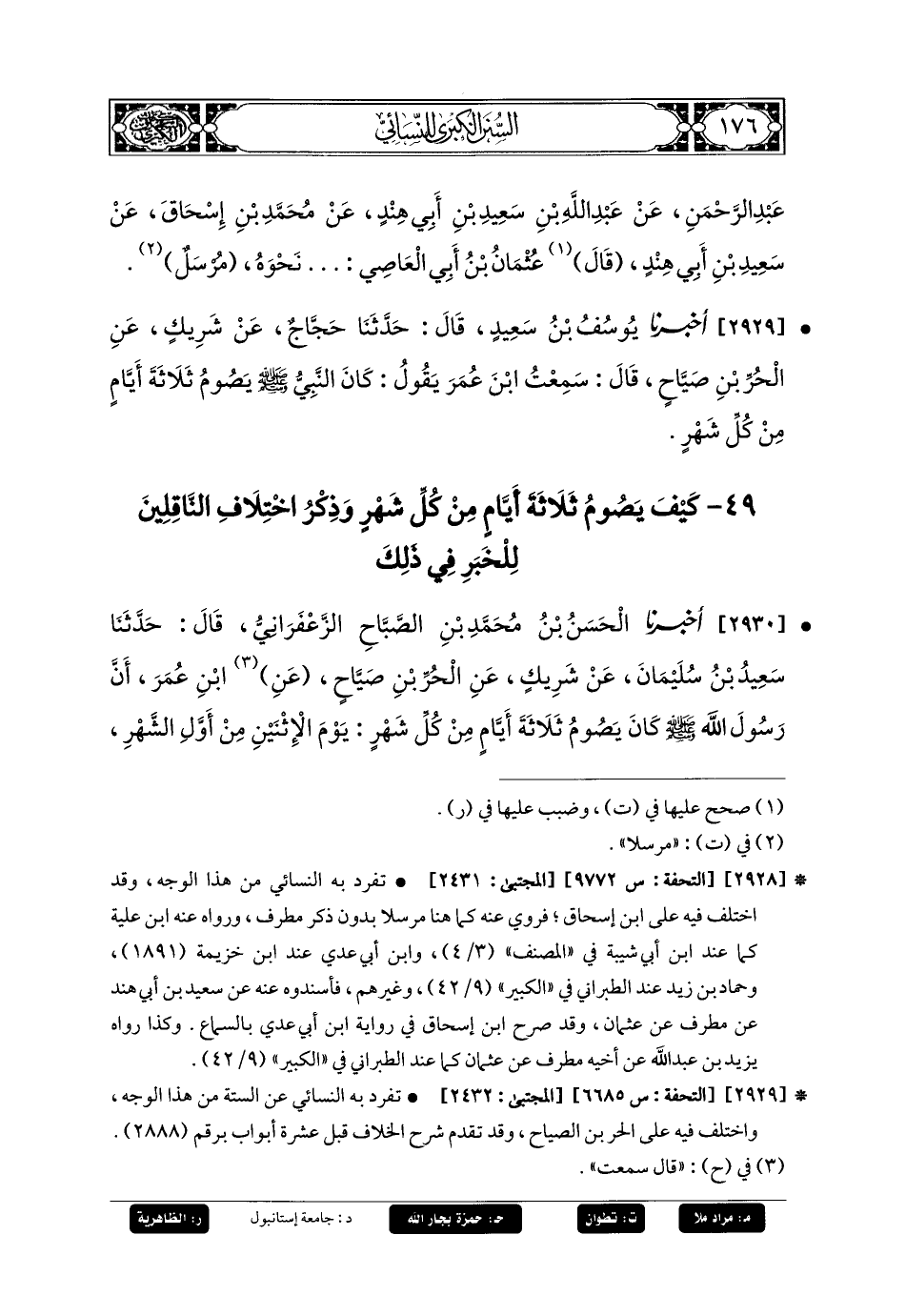 49- كَيْفَ يَصُومُ ثَلاثَةَ أَيَّامٍ مِنْ كُلِّ شَهْرٍ وَذِكْرُ اخْتِلافِ النَّاقِلِينَ لِلْخَبَرِ فِي ذَلِكَ.