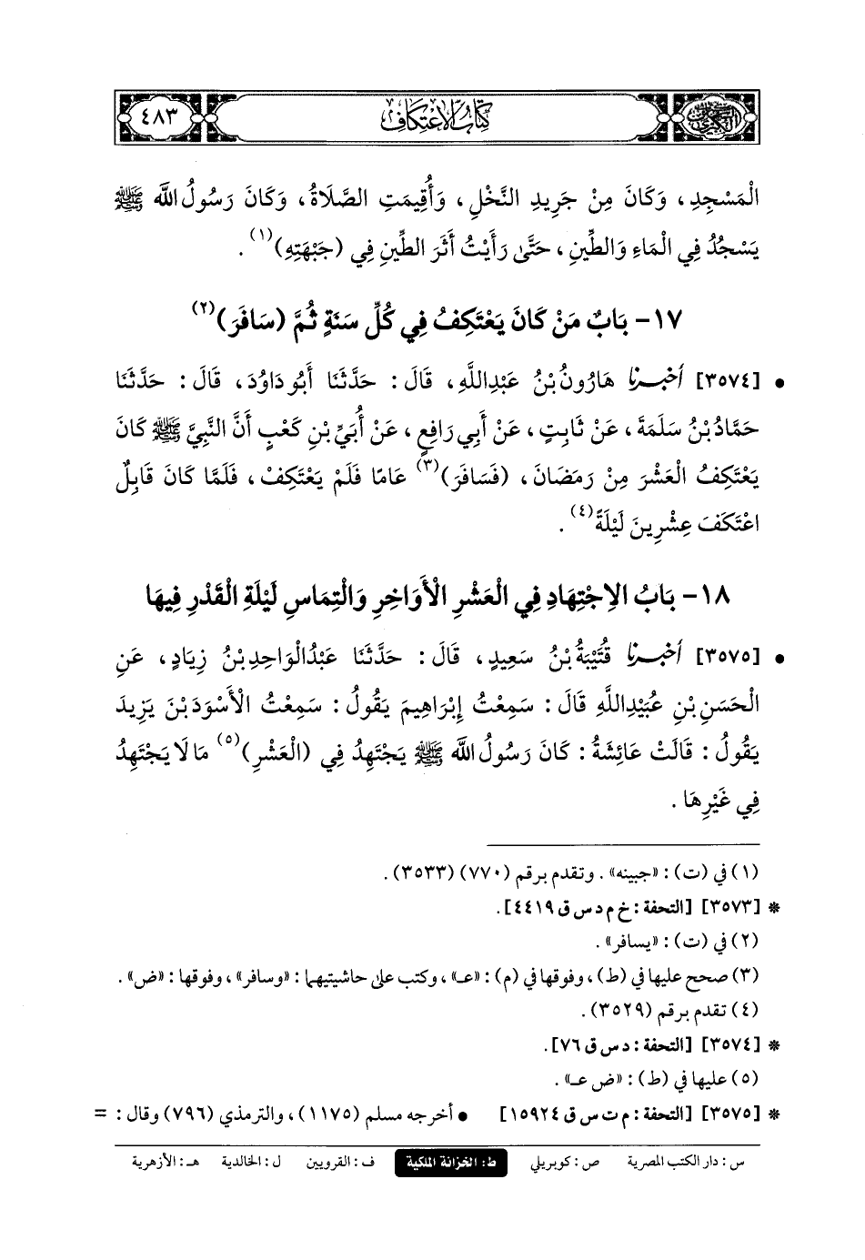 3574- أَخبَرنا هَارُونُ بنُ عَبدِ اللهِ، قَالَ: حَدثنا أَبو دَاوُدَ، قَالَ: حَدثنا حَمَّادُ بنُ سَلَمَةَ، عَن ثَابِتٍ، عَن أَبي رَافِعٍ، عَن أُبَيِّ بْنِ كَعْبٍ، أَنَّ النَّبِيَّ صَلى الله عَليه وسَلم كَانَ يَعْتَكِفُ العَشْرَ مِنْ رَمَضَانَ، فَسَافَرَ عَامًا فَلَمْ يَعْتَكِفْ، فَلَمَّا كَانَ قَابِلٌ اعْتَكَفَ عِشْرِينَ لَيْلَةً.