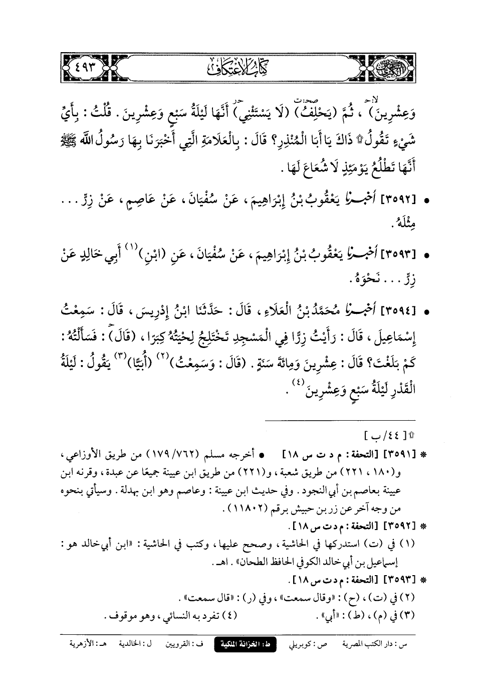 3593- أَخبَرنا يَعقُوبُ بنُ إِبرَاهِيمَ، عَن سُفْيَانَ، عَنِ ابنِ أَبي خَالِدٍ، عَن زِرٍّ، ... نَحْوَهُ.