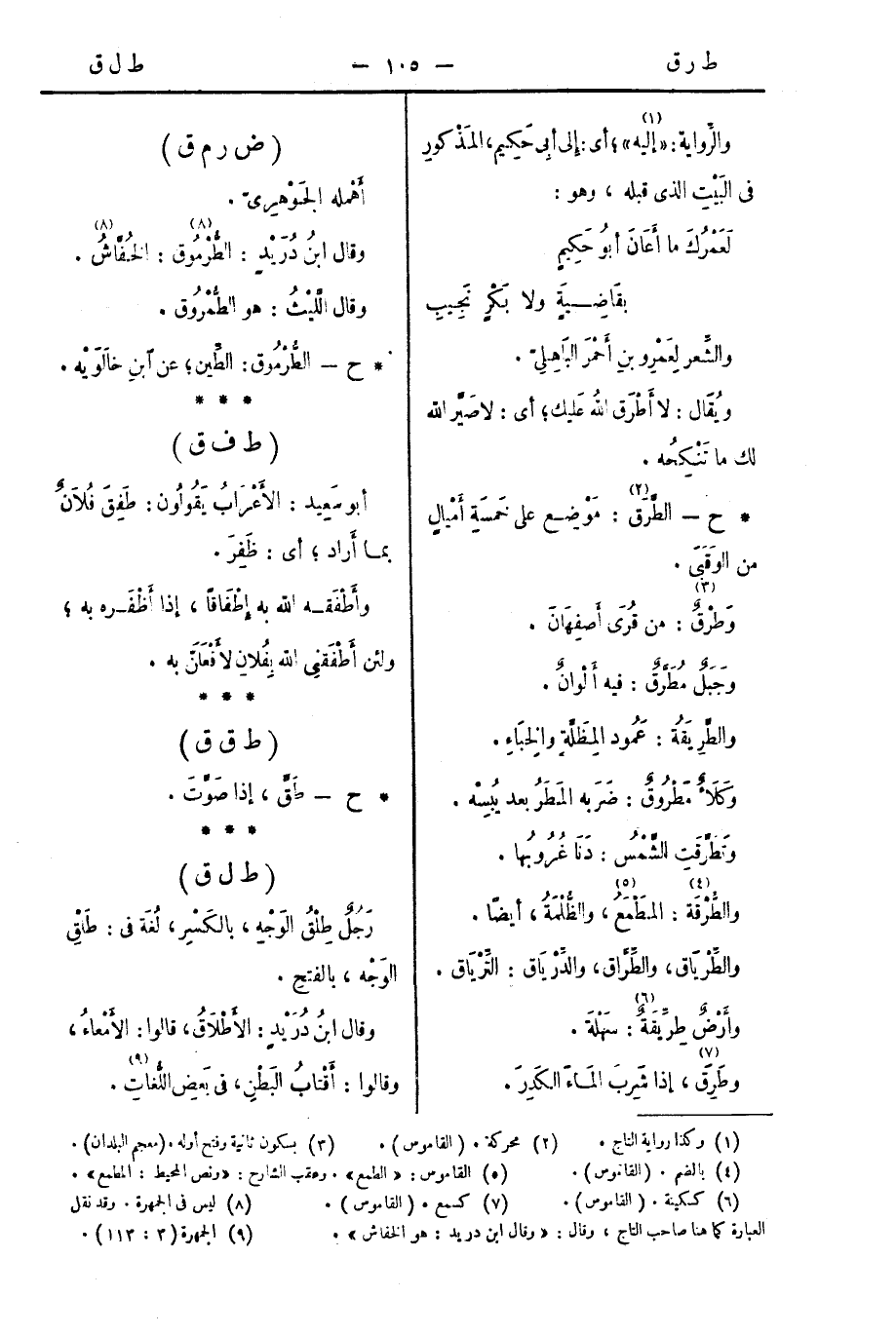 * ح - الطَّرَقُ: مَوْضِعٌ على خَمْسَةِ أمْيالٍ من الوَقَبَى.