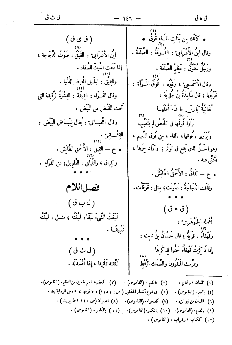وقال الأصمعيُّ وغيرُه: قُوقُ المَرْأَةِ: فَرْجُها؛ قال سَاعِدَةُ بنُ جُؤَيَّةَ: