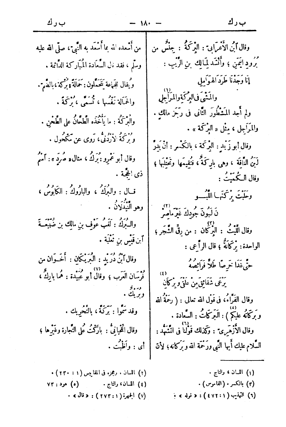 وقال الفَرَّاءُ، في قَوْلِ اللهِ تعالى: (رَحْمَةُ اللهِ وبَرَكَاتُه عَلَيْكُم): البَرَكَاتُ: السَّعَادَةُ.