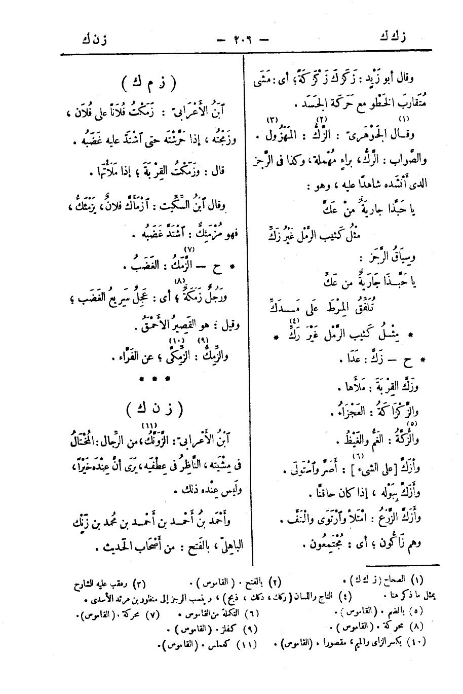 وقال الجوهريُّ: الزَّكُّ: المَهْزُولُ. والصَّوابُ: الرَّكُّ، براءٍ مهملةٍ، وكذا في الرَّجَزِ الذي أنشدَه شاهِدًا عليه، وهو: