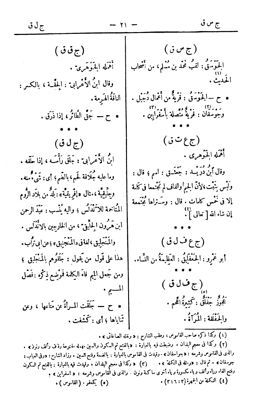 * ح - جَلَقَتِ المرأةُ عن مَتَاعِها، وعن ثَناياها؛ أي: كَشَفَتْ.