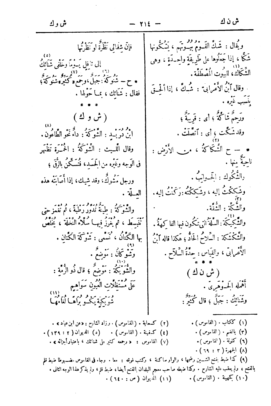 * ح - شَنُوكَةُ: جَبَلٌ، وجَمَعَ كُثَيِّرٌ " شَنُوكَة " فقالَ: شَنَائِك، بما حَوْلَها.
