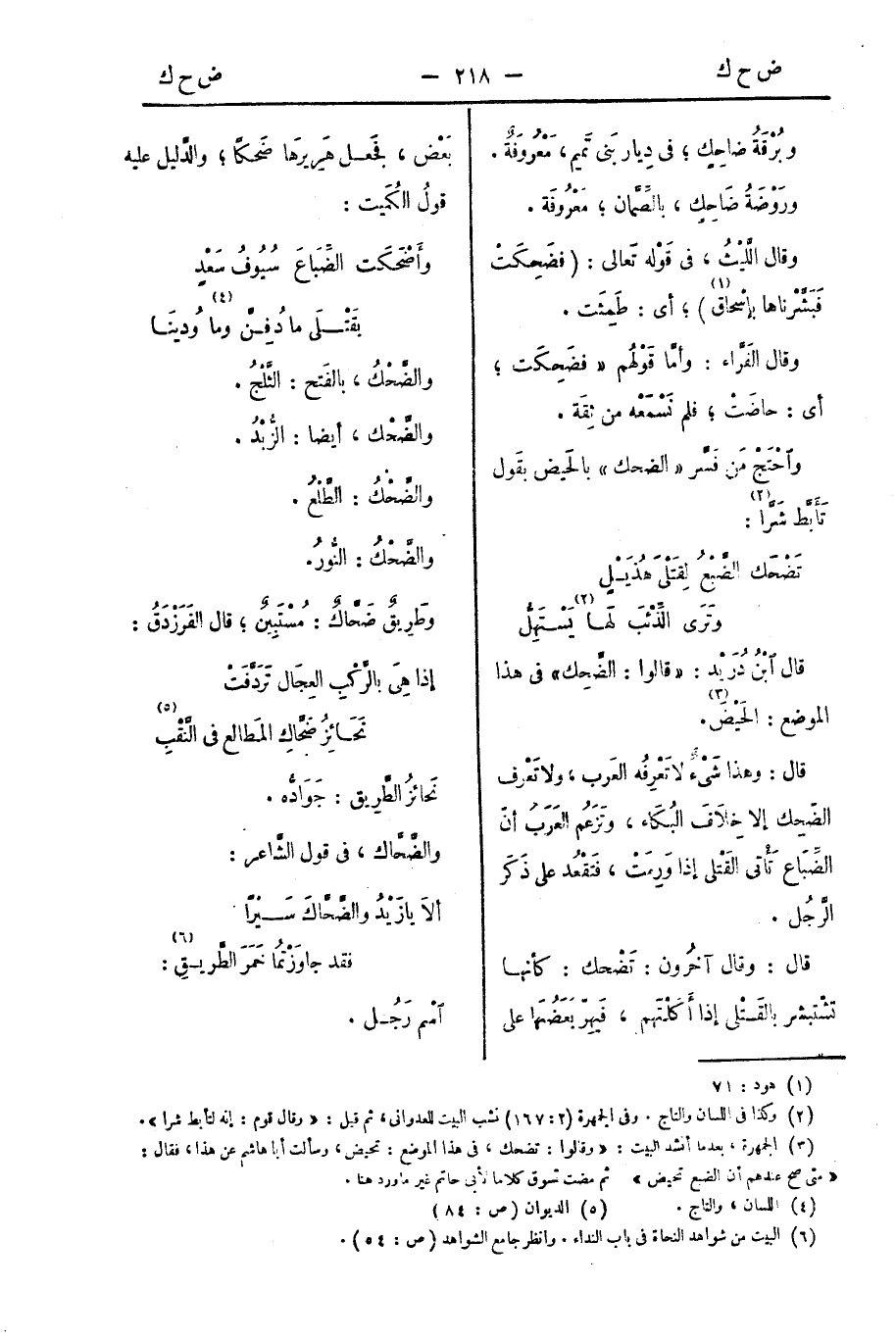 وقال اللَّيْثُ، في قَوْلِه تَعالى: (فَضَحِكَتْ فَبَشَّرْنَاهَا بإسْحَاقَ)؛ أي: طَمِثَتْ.