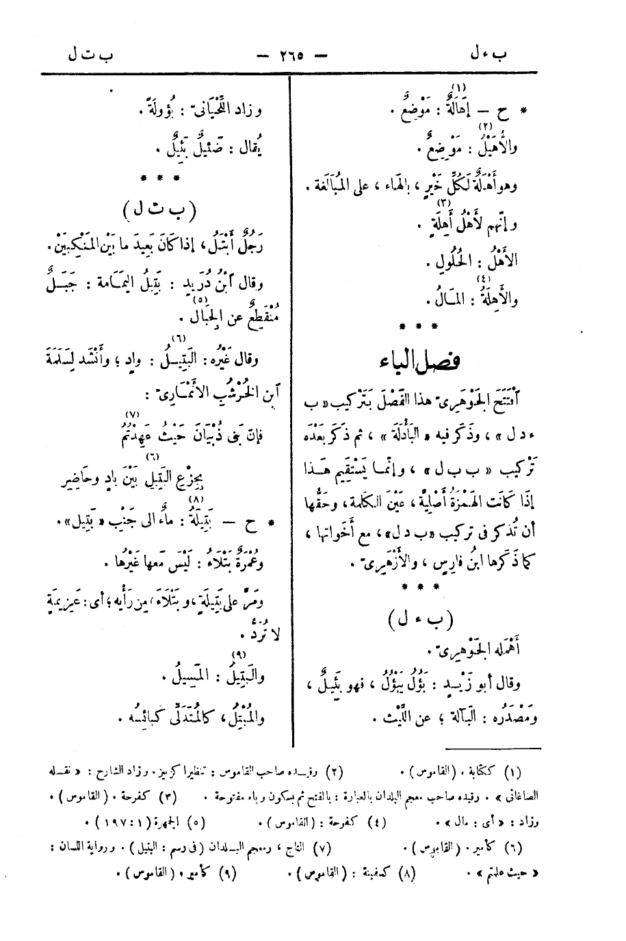 افْتَتَحَ الجوهريُّ هذا الفَصْلَ بتَرْكِيبِ " ب أد ل "، وذَكَرَ فيه " البَأْدَلَةَ "، ثم ذَكَرَ بَعْدَه تَرْكِيبَ " ب ب ل "، وإنَّما يَسْتَقِيمُ هذا إذا كانَتِ الهمزةُ أَصْلِيَّةً عَيْنَ الكَلِمَةِ، وحَقُّها أَنْ تُذْكَرَ في تركيبِ " ب د ل " مع أَخَواتِها كما ذَكَرَها ابنُ فَارِسٍ والأزهريُّ.