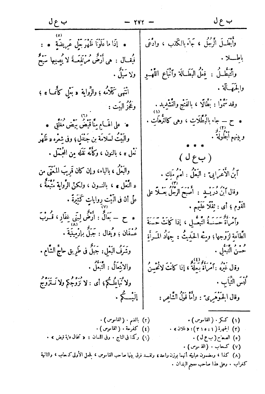 والبَعْلُ، بالباءِ، وإنْ كانَ قَرِيبَ المَعْنَى من " النَّعْلِ "، بالنونِ، ولكنَّ الرِّوايةَ مُتَّبَعَةٌ، على أنَّ في البَيْتِ رِواياتٍ كَثِيرَةً.