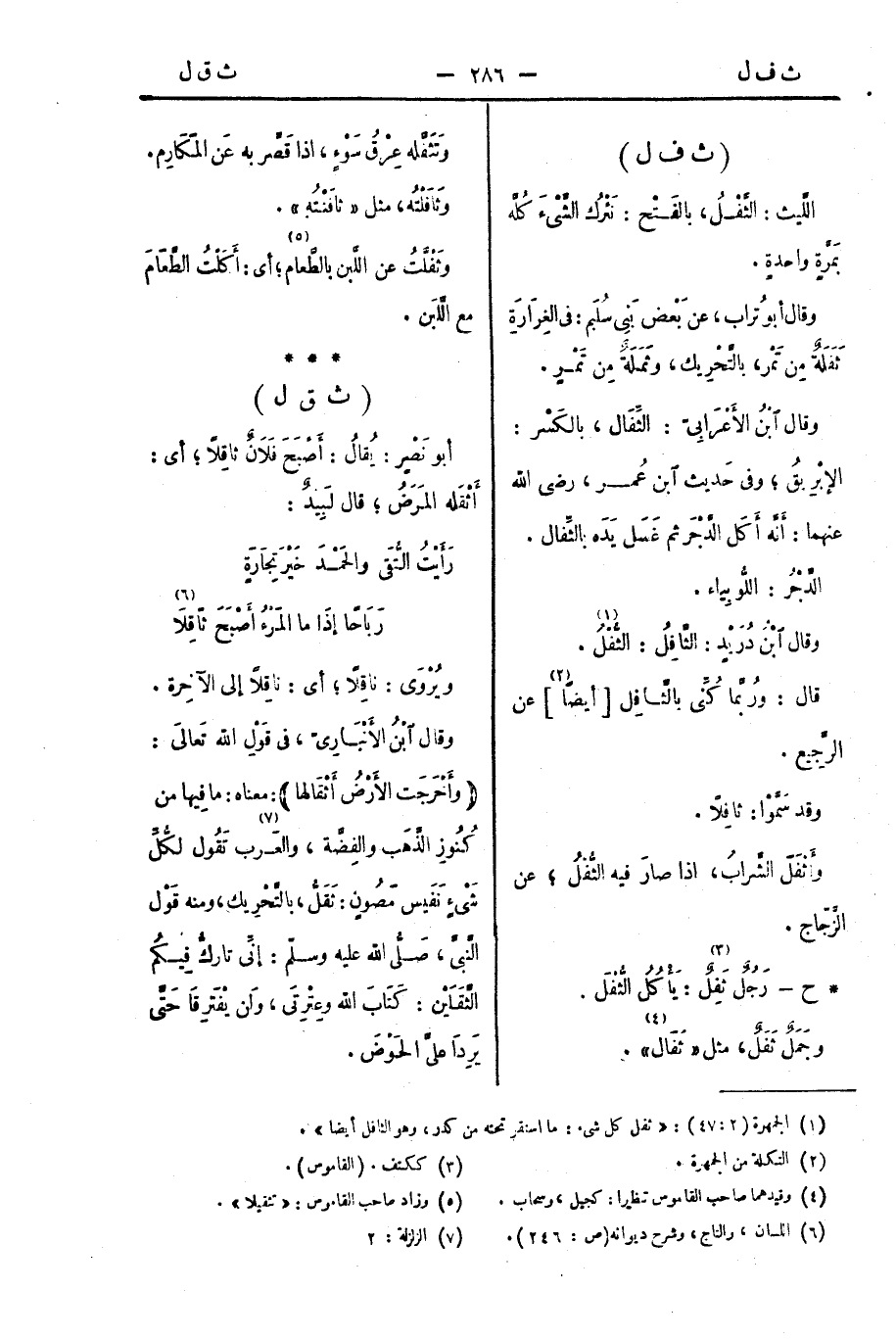 * ح - رَجُلٌ ثَفِلٌ: يَأْكُلُ الثُّفْلَ.