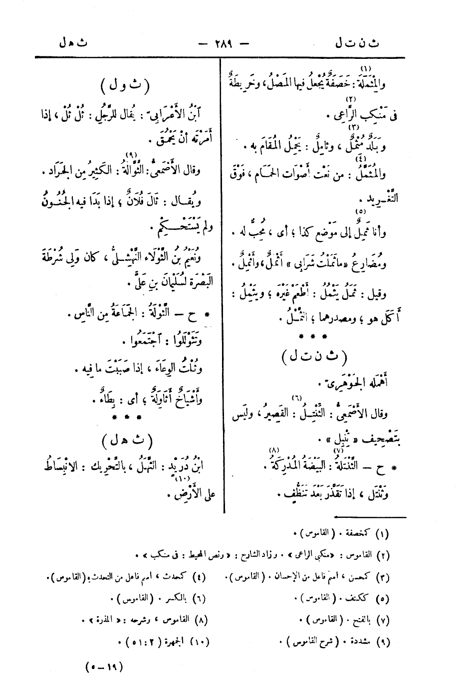 ابنُ الأعرابيِّ: يُقالُ للرَّجُلِ: ثُلْ ثُلْ، إذا أَمَرْتَهُ أَنْ يَحْمُقَ.