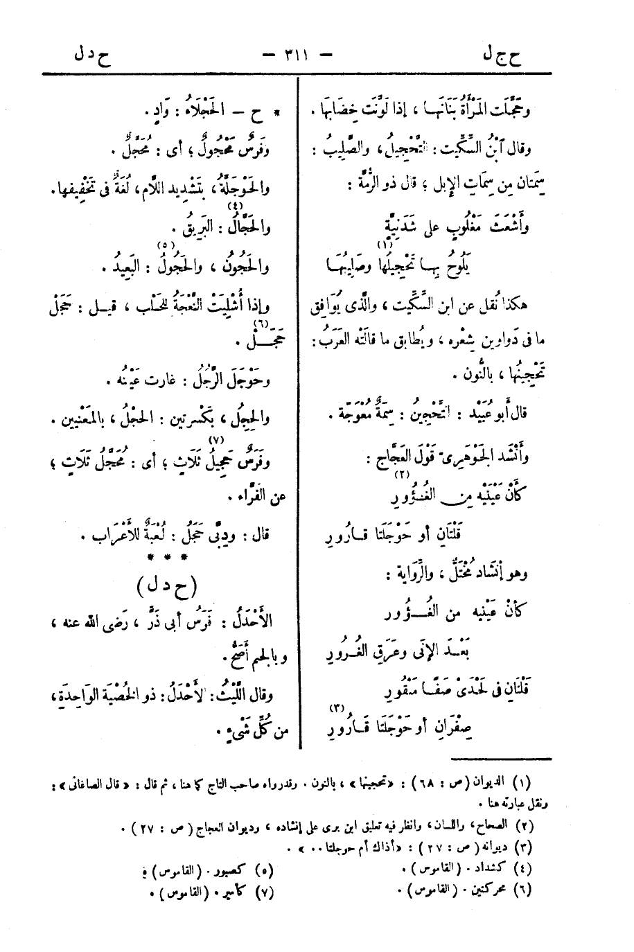 وقالَ ابنُ السِّكِّيتِ: التَّحْجِيلُ، والصَّلِيبُ: سِمَتَانِ مِنْ سِمَاتِ الإِبِلِ؛ قال ذو الرُّمَّةِ: